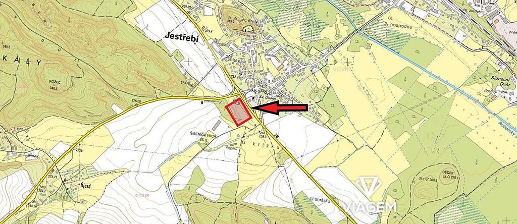 Lokace pozemků se nachází ve středu koridoru pro silnici s mimoúrovňovou křižovatkou, který můžete vidět na přiloženém územním plánu (zaznačeno žlutě). Pozemky podobného typu výhodně vykupuje ŘSD (Ředitelství silnic a dálnic).