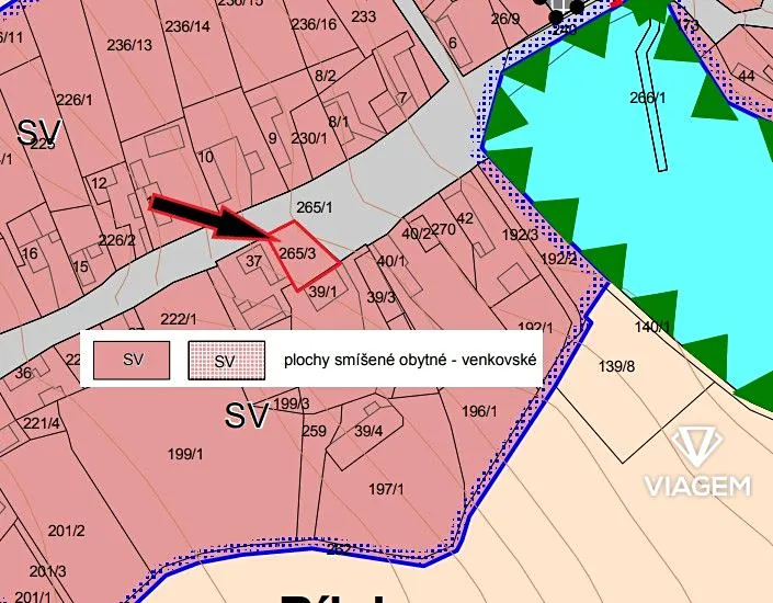Tento pozemek je zapsán na LV 163 s parcelním číslem 265/3 o celkové výměře 397 m2