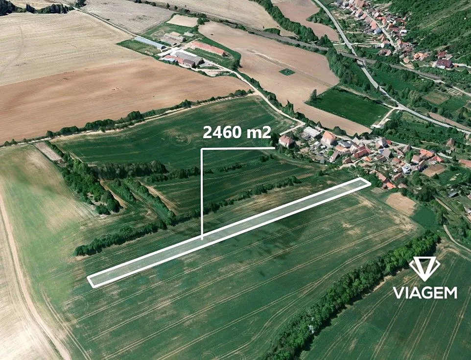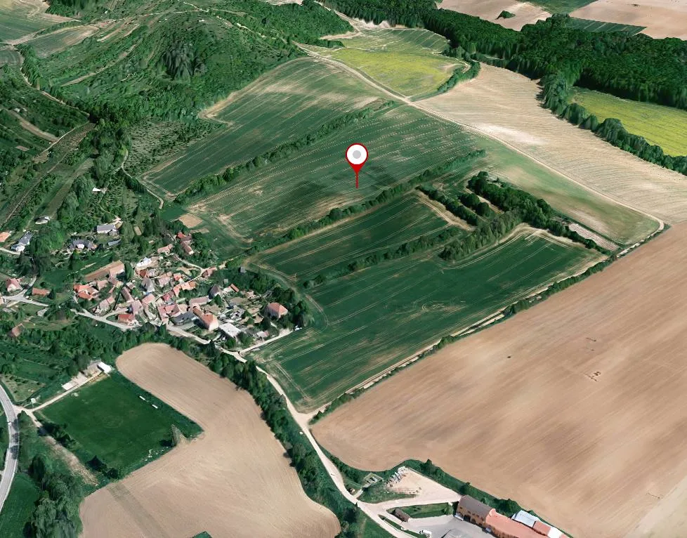 Pozemek se nachází na okraji zastavěného území obce a přímo na něj navazuje, což mu přidává na atraktivitě. Část pozemků je v návrhu územního plánu označena jako plochy pro bydlení (stavební využití), zbytek je aktuálně veden jako orná půda.