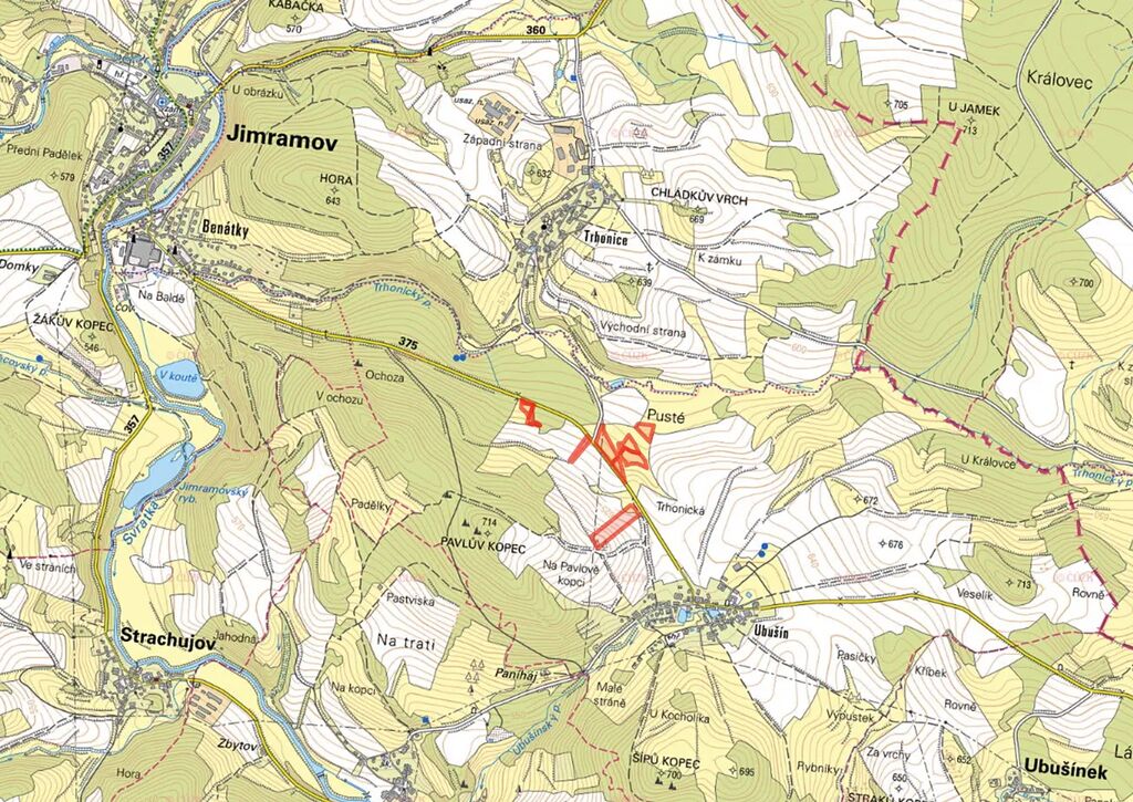 Nabízíme k prodeji 100% vlastnictví souboru zemědělských pozemků v katastrálním území Ubušín, okres Žďár nad Sázavou.