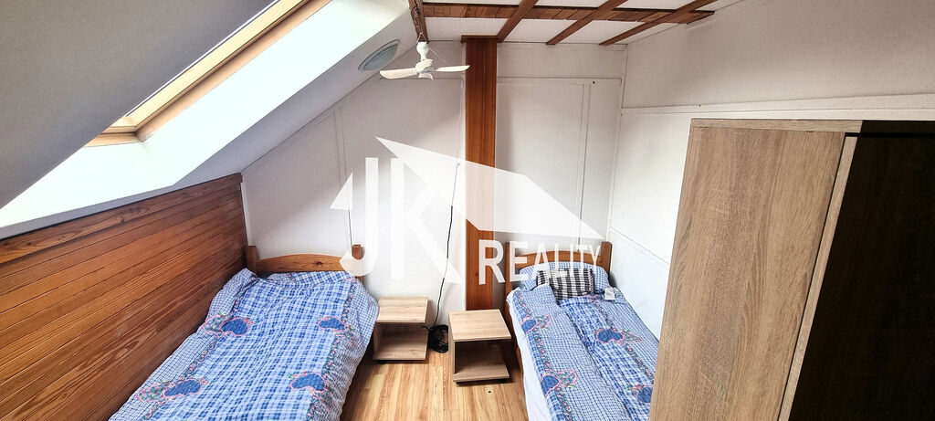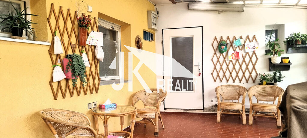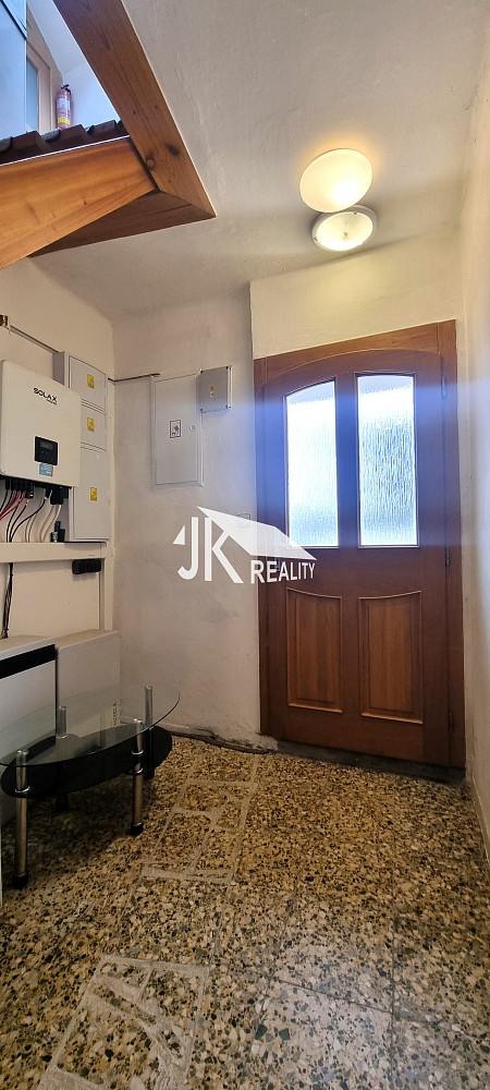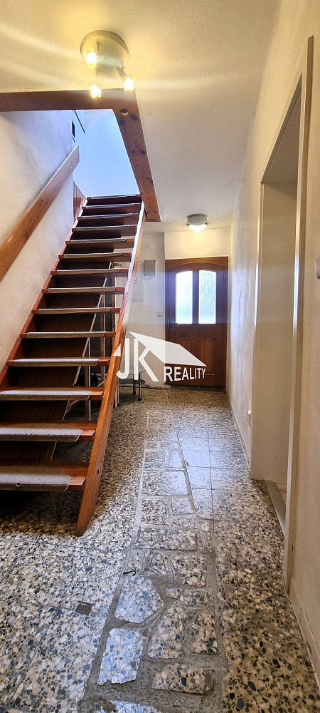 V prvním nadzemním podlaží se nachází vstupní chodba, koupelna s WC, kuchyně s obývacím pokojem a výstupem přes zimní zahradu na dvůr. V obytném podkroví jsou samostatné pokoje, WC a koupelna. Díky dispozicím je nemovitost ideální pro rodinu s dětmi anebo pro kutily, protože poskytuje dostatek prostoru jak v garáži, tak v samostatné dílně na dvoře. Oplocená zahrada je rovinatá se vzrostlými stromy a záhony.