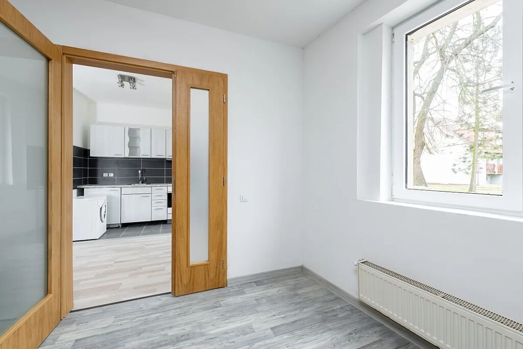 Byty jsou nadstandardně vybaveny kuchyňskou linkou a ve všech místnostech je osvětlení. Do domu je priveden vysokorychlostní Internet optickou linkou. Topení je řešené plynem. Dům se nachází v centru obce na náměstí, vedle je hřiště na volejbal a nohejbal a dětský koutek. V obci je k dispozici pošta, potraviny a samozřejmě autobusové spojení s městem Podbořany (5km), kde jsou veškeré služby jako vlak, lékař, škola, banka, úřad práce apod. Na dálnici do Prahy je to 7km a v Praze jste po dálnici za 40 min.