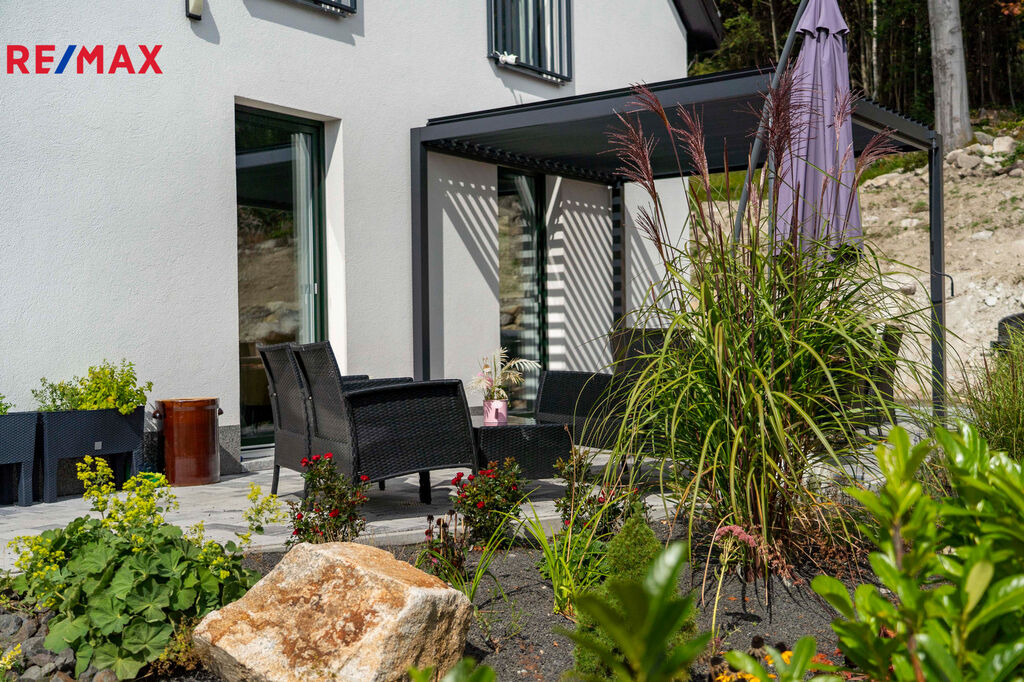 * **Propojení s přírodou** – terasa a zahrada s výhledem na lesy a kamenné svahy