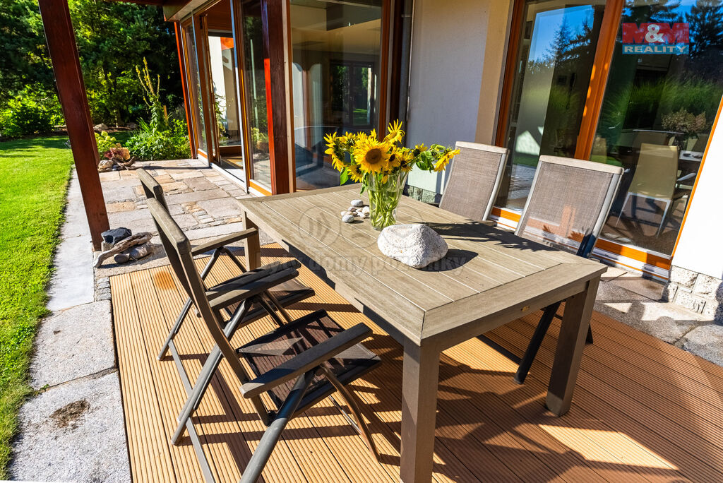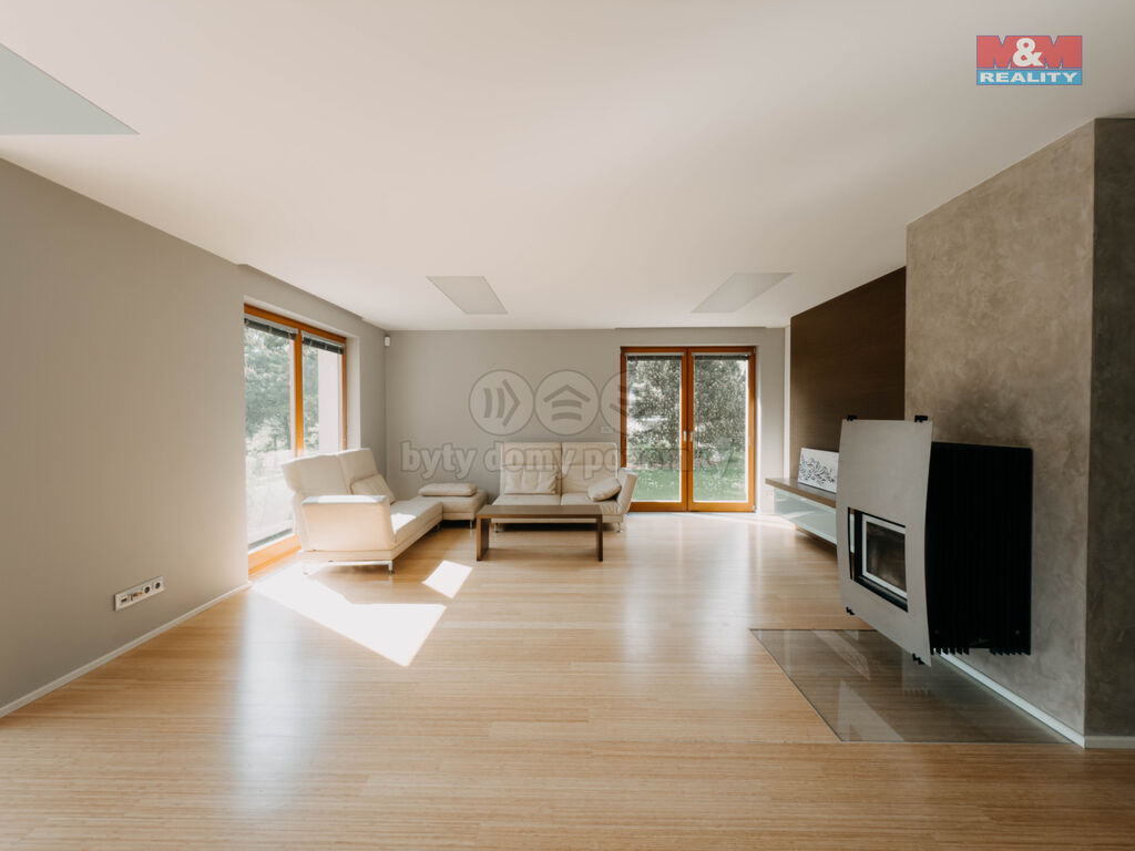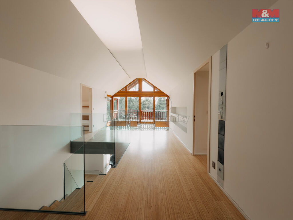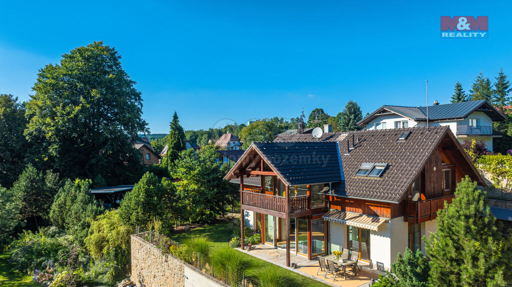 Nabízíme ke koupi výjimečný rodinný dům v alpském stylu, navržený architektem Martinem Sladkým, situovaný v klidné části Jablonce nad Nisou. Tato cihlová stavba se pyšní dvěma nadzemními a jedním podzemním podlažím, poskytující celkem 6 prostorných místností. Dům na pozemku o rozloze 750 m² nabízí užitnou plochu 300 m².Interiér je navržen s důrazem na přirozené světlo, což podtrhují celoskleněná zábradlí a prosklené podlahy. Přízemí slouží jako společenská zóna s obývacím pokojem, kuchyní, pracovnou a moderní koupelnou. Horní patro je určeno pro soukromý relax s ložnicí a dvěma pokoji s vlastními koupelnami. Suterén nabízí technické zázemí a úložné prostory. Terasa s výhledem do zeleně dotváří harmonické propojení s přírodou. Venkovní žaluzie zajišťují optimální osvětlení. K domu náleží zateplená dvojgaráž a prostor na kola a lyže. Dům je v perfektním stavu a čeká na nové majitele, kteří ocení jeho jedinečnost a kvalitu. Více informací sdělí makléř na prohlídce.