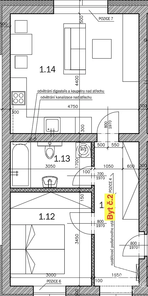 Zálohy na energie a služby: 5 750 Kč / měsíc (elektřina, teplo, vodné a stočné, internet s TV, úklid a údržba společných prostor)