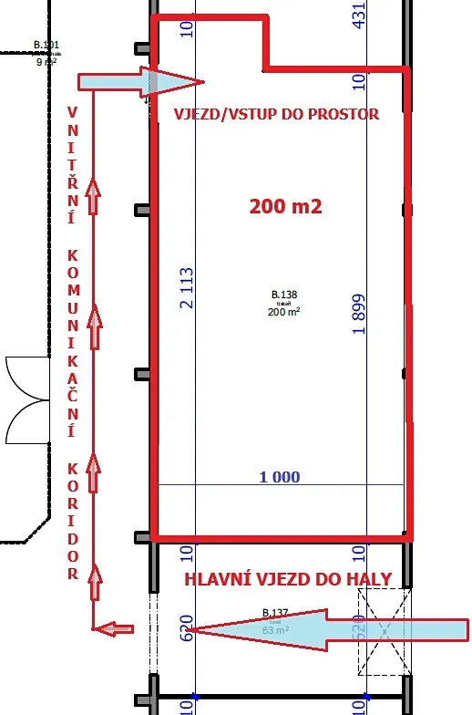 ◉ 200 m2 – jednolitá volná skladově výrobní plocha, temperovaná, s možností zřízení samostatného vstupu/vjezdu do prostor, samostatný, zděný, světlá výška 3,3 m, dostatečný příkon el. energie, možnost společného zázemí (WC, sprchy, šatny, atd.), možné jeho variabilní využití.