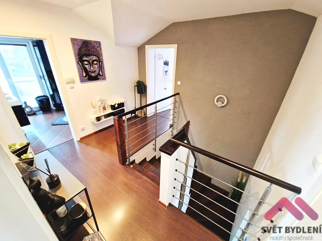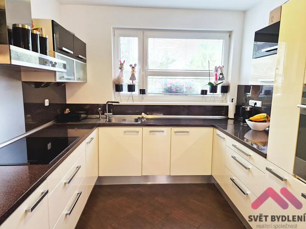 Prostorný obývací pokoj s velkými okny a přímým vstupem do zimní zahrady. Otevřené propojení s moderní kuchyní vytváří příjemný rodinný prostor pro společná setkání. Kuchyňská linka je vybavena kvalitními spotřebiči a množstvím úložného prostoru. Technická místnost s úsporným kondenzačním kotlem zajišťujícím vytápění a ohřev vody. Garáž, aktuálně využívaná jako tělocvična a sklad, s možností navrácení do původní funkce.
