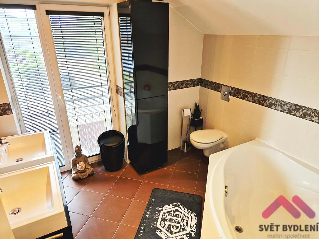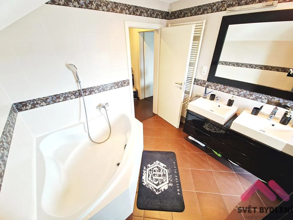 Tři samostatné ložnice, všechny vybavené vestavěnými skříněmi na míru. Velká šatna - ideální pro přehledné uskladnění oblečení a sezónních věcí. Z šatny lze udělat další pokoj. Koupelna s rohovou vanou a podlahovým topením pro maximální komfort.