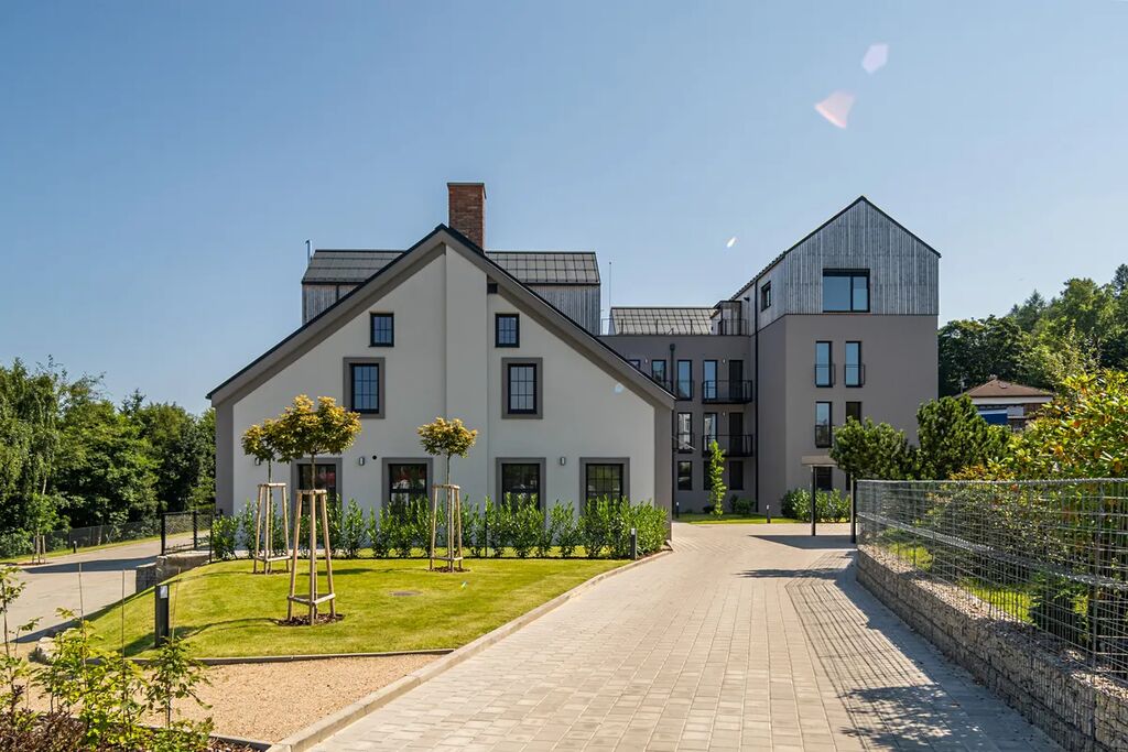 Všechny byty v projektu mají vysoký standard vybavení: kvalitní vinylové podlahy s akustickou podložkou, teplovodní podlahové vytápění, francouzská okna s izolačním trojsklem, moderní sanita značky Grohe, velkoformátové obklady v koupelnách atd.