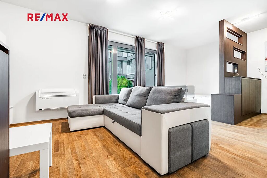 K dlouhodobému pronájmu nabízíme stylově zařízený byt 1kk o výměře 37 m², situovaný v přízemí moderního rezidenčního komplexu v atraktivní lokalitě Prahy 3 – ulice Olšanská. K bytu náleží terasa o celkové rozloze 27 m², prostorný sklep a vyhrazené parkovací stání v garáži za extra poplatek.