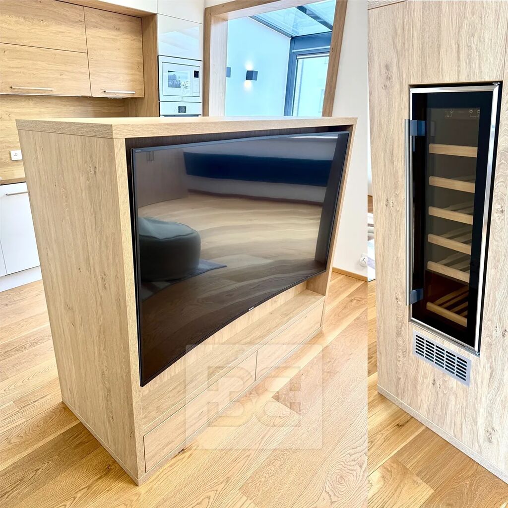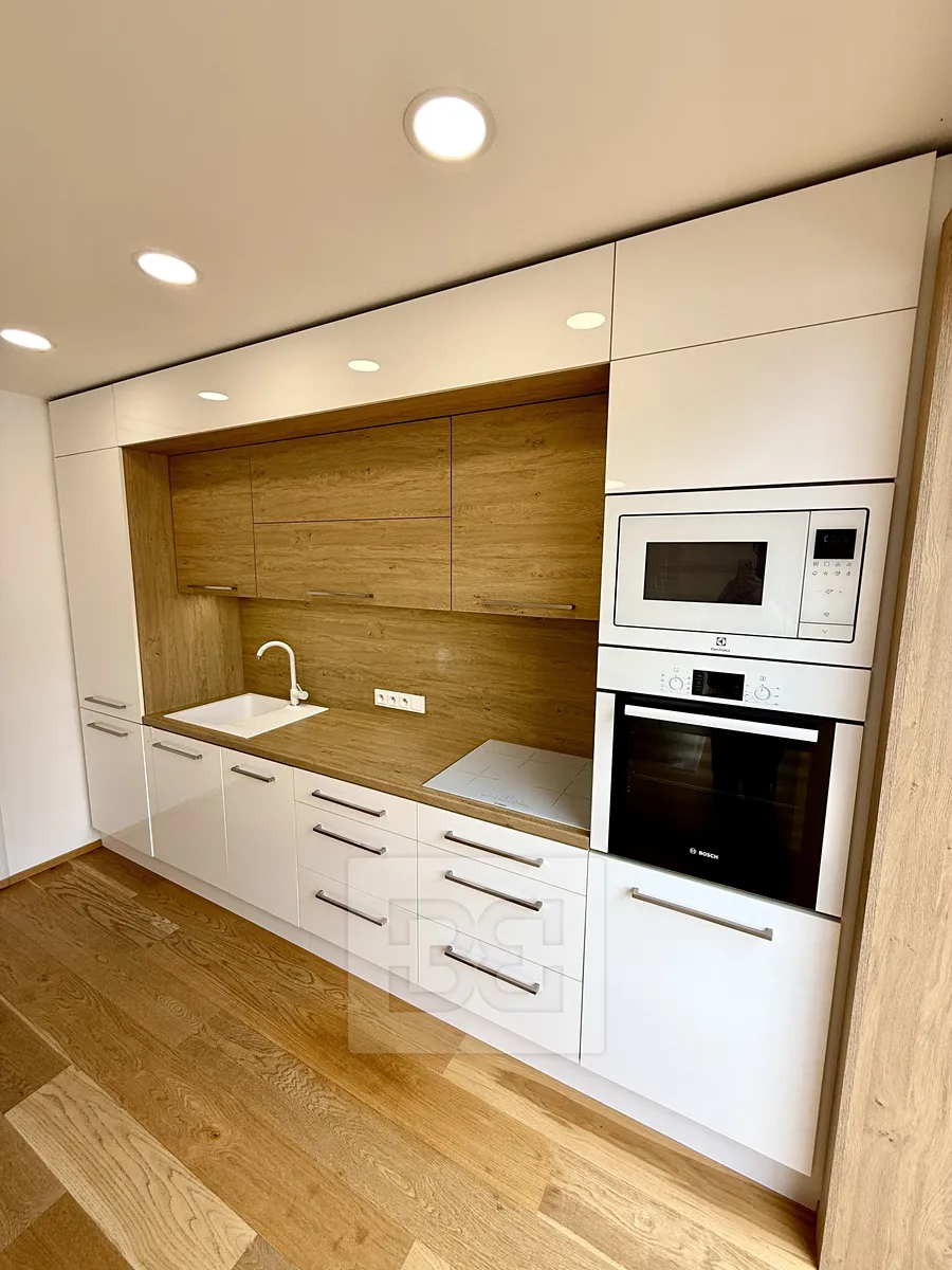 V levé části bytu je prostorný obývací pokoj, kterému dominuje vestavěná TV s vinotékou, a moderní kuchyňská linka s vestavěnými spotřebiči (myčka, lednice s mrazákem, pečicí a mikrovlnná trouba, indukční varná deska). V zadní části bytu se nachází zimní zahrada, vybavená elektricky ovládanou výsuvnou markýzou. Byt je zabezpečen alarmem. Atmosféru bytu podtrhuje designové osvětlení, které je efektně instalováno po celé ploše bytu. PENB není zpracován, dle spotřeby uvedeno D.