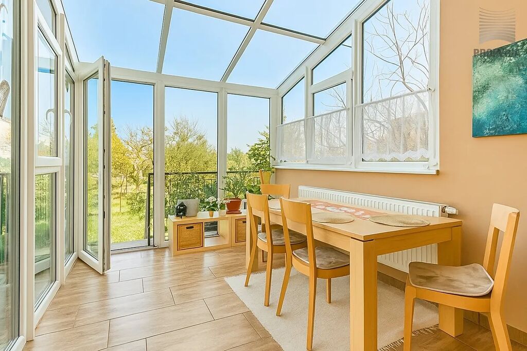 V přízemí se rozprostírá prostorný obývací pokoj s krbem, na který navazuje kuchyňský kout a vytápěná zimní zahrada. Ta krásně propojuje interiér s exteriérem a díky velkoplošnému prosklení přivádí do domu dostatek denního světla. Zimní zahradu oceníte nejen v létě, ale i v chladnějších měsících, kdy vám poskytne příjemné místo k odpočinku.