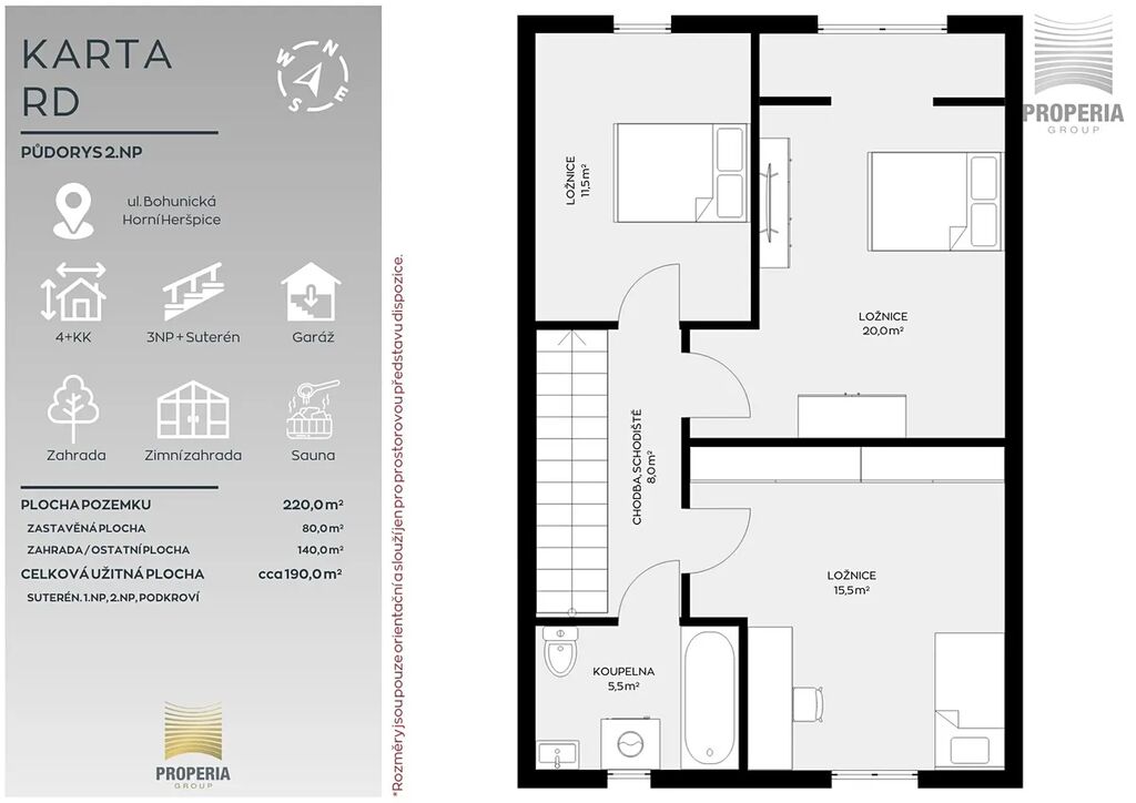 •	zastavěná plocha: 80 m² (podlahová plocha jednoho podlaží cca 60 m²)