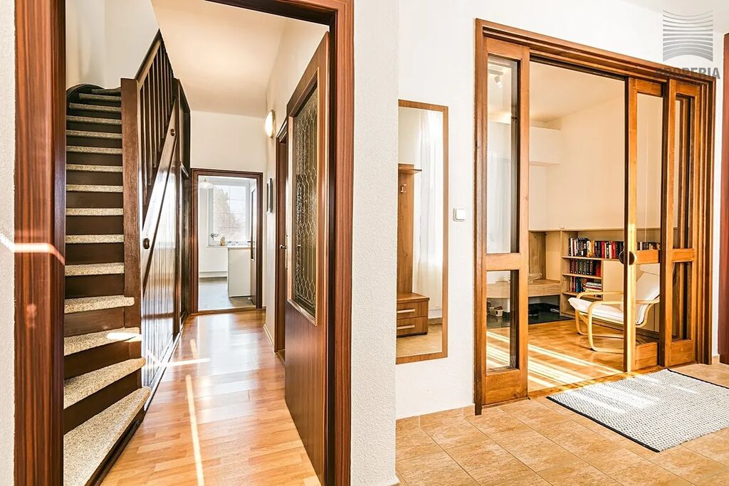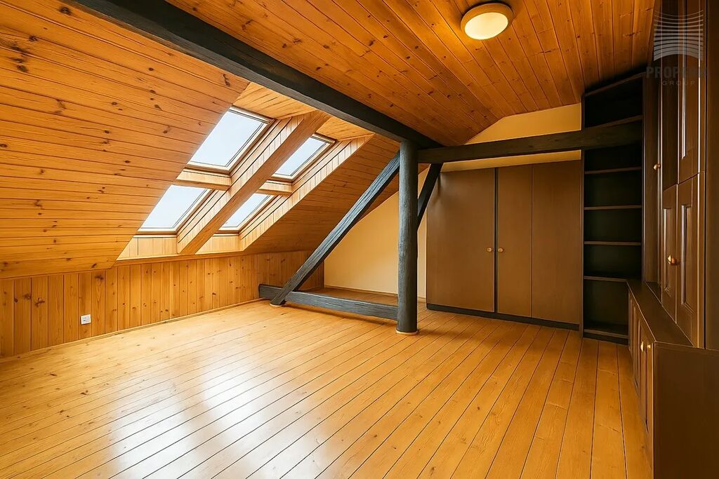 V druhém podlaží se nachází dvě ložnice orientované do klidného vnitrobloku zahrad, třetí pokoj s vestavěnou skříní a koupelna. Podkroví nabízí upravený prostor, který může sloužit jako dětská herna či úložné místo pro sezónní věci. Další část podkroví čeká na rekonstrukci a nabízí možnost přizpůsobení dle vašich představ.