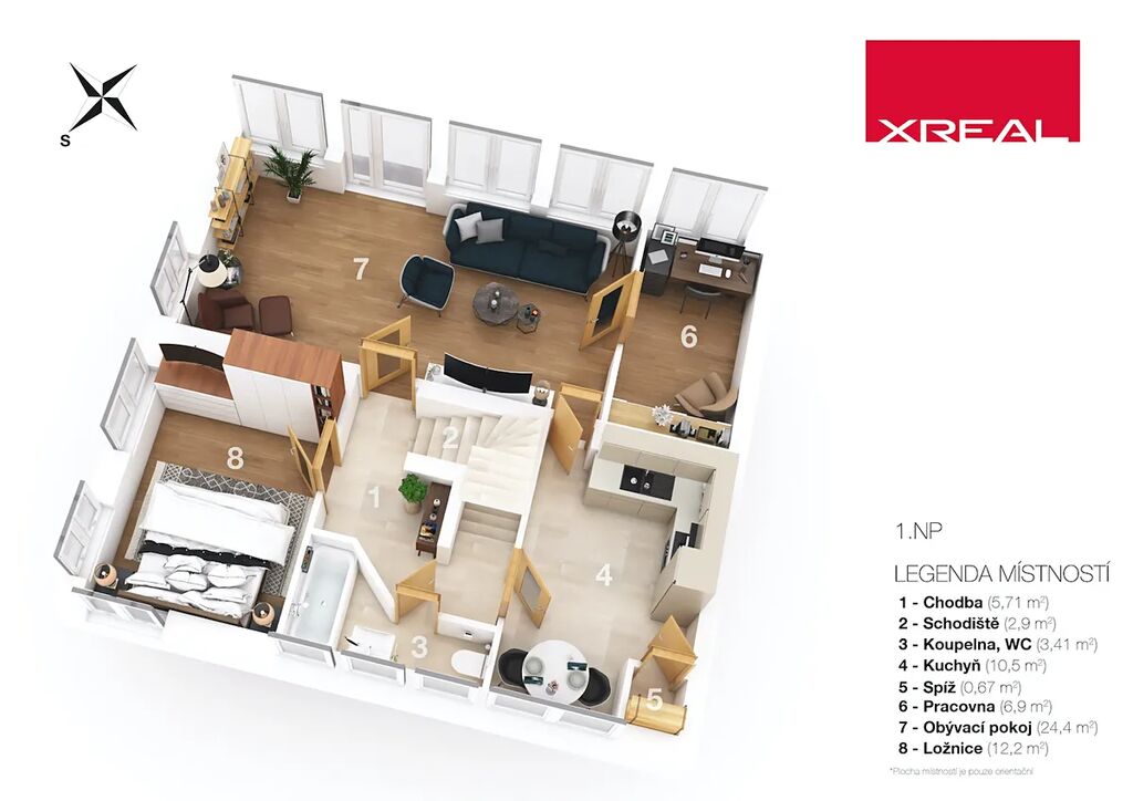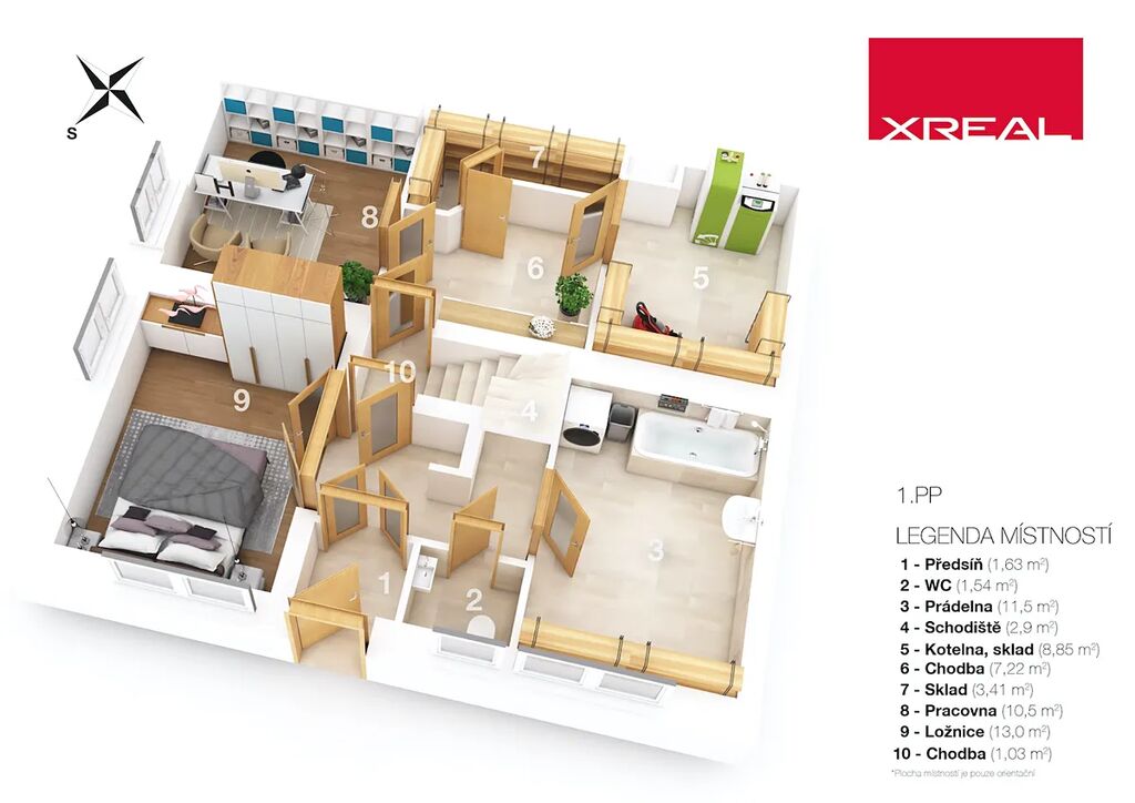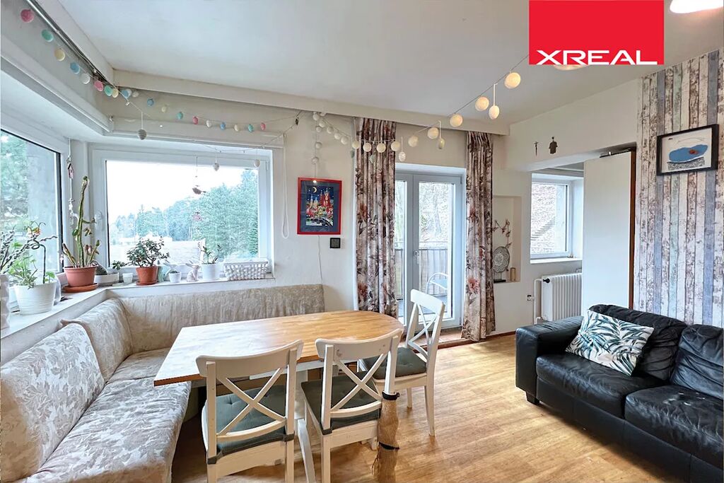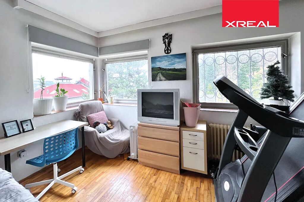 pro jednu rodinu nebo jako 3 samostatné byty, případně byt s prostorem k podnikání. Krásné a barvité výhledy na Prokopské údolí a centrum města z pohodlného balkonu i pozemku a zahrady. Dům je prostorný a má další rezervy ve využití prostoru nad garážemi, optimálně na přístavbu garsonky nebo ateliéru o výměře cca 25 m2, případně kanceláře, zimní zahrady, skleníku nebo jen na další parkovou plochu.