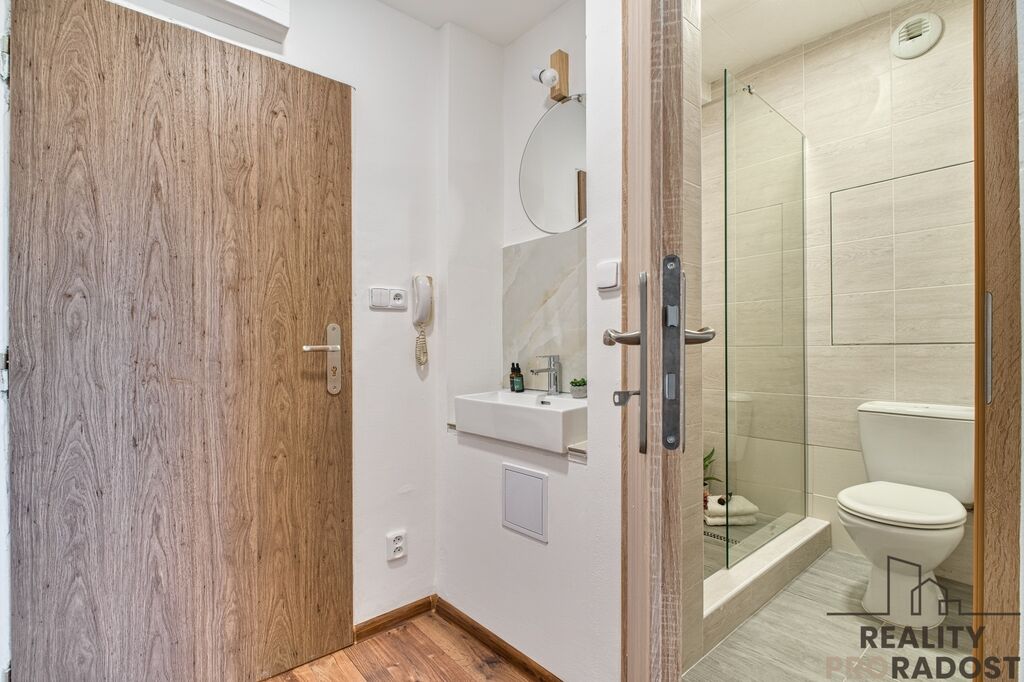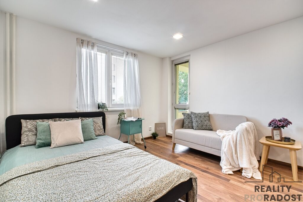 Byteček je skromný, ale pro jednotlivce nebo mladý pár který chce mít svoje, dostačující. Nabízí 20,5m2, pěknou koupelnou, prostorným pokojem a lodžií. 3 patro z celkových 9. vám zaručí že se nezadýcháte, ale pokud máte rádi pohodlí, je k dispozici výtah.