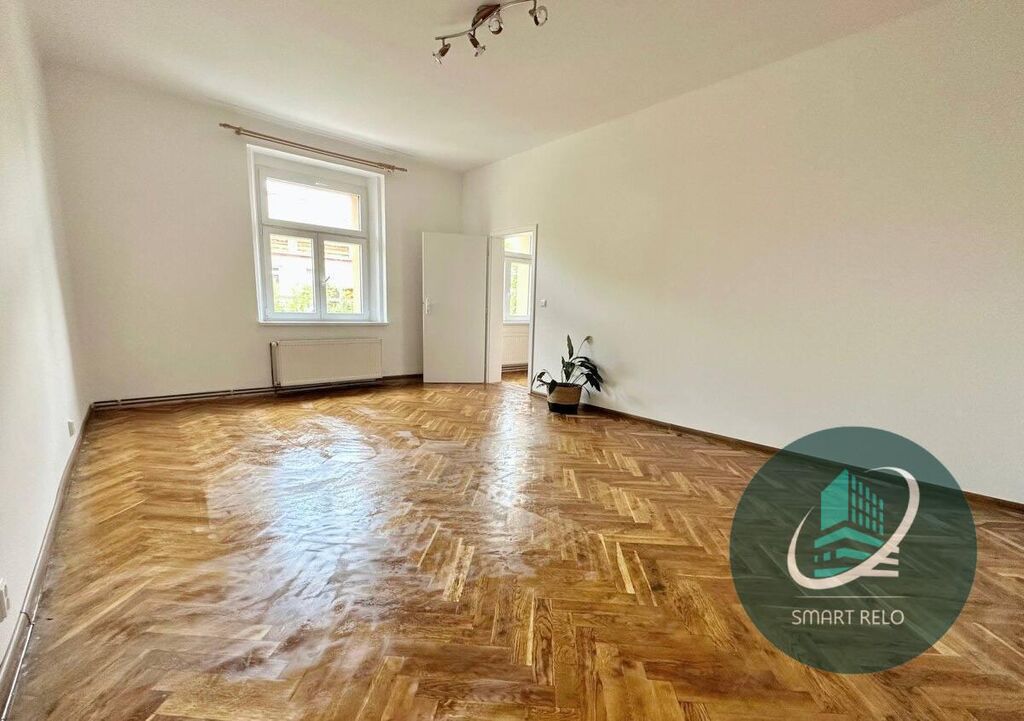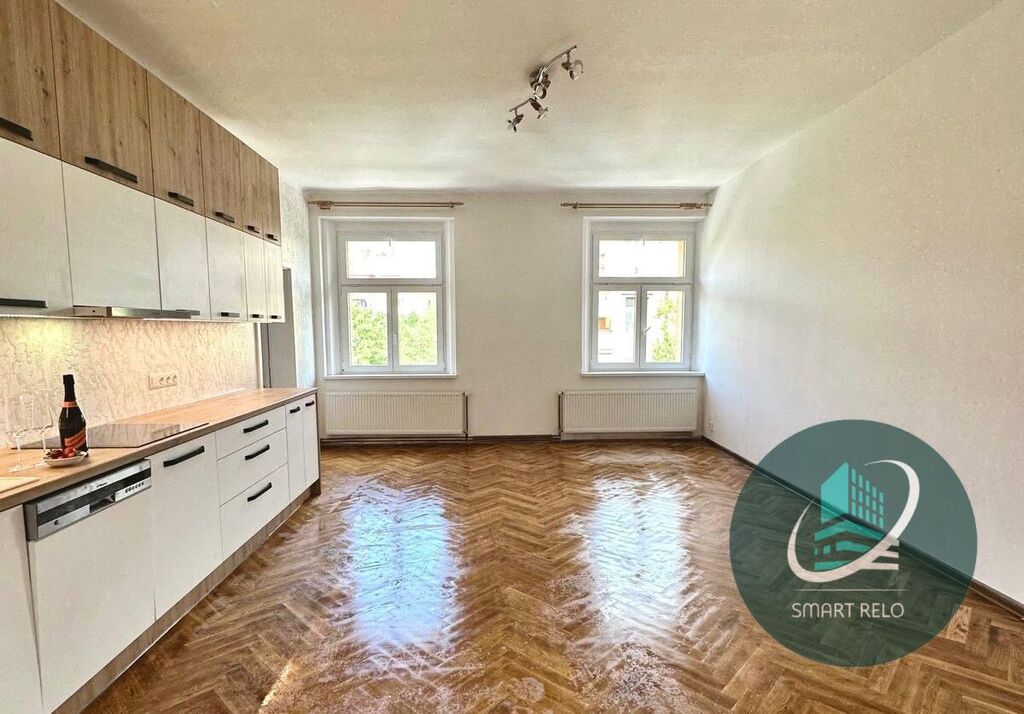 K pronájmu světlý a moderní byt 2+kk o velikosti 80 m po kompletní rekonstrukci. Nachází se ve 2. patře cihlového domu bez výtahu. Byt se skládá z velké ložnice a prostorného obývacího pokoje s moderním kuchyňským koutem.
