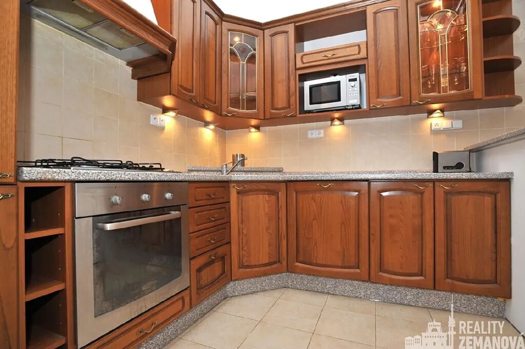 Byt je nabízen zařízený kuchyňskou linkou vybavenou sporákem, mikrovlnnou troubou, myčkou, lednicí a mrazničkou. Nábytek viz fota. Vytápění je zajištěno plynovým etážovým kotlem, v bytě je zřízen elektronický zabezpečovací systém.