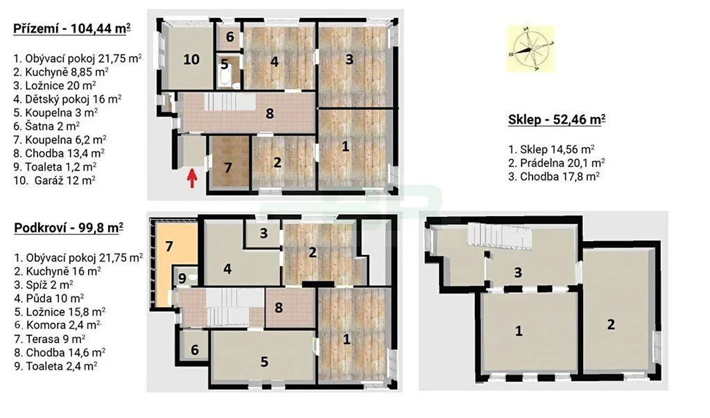 Prodej samostatného RD 5+2 s terasou, sklepem a garáží, o užitné ploše 250 m2 + další dvougaráž o výměře 30 m2, na pozemku o celkové ploše 651 m2, v zástavbě rodinných domů, v klidné lokalitě - Praha 9, Letňany, ulice Buchlovská. Dům je ve stavu k rekonstrukci. Stanice metra Letňany 1 km od domu, OC Letňany 1,4 km od domu. Dispozice domu umožňuje i využití jako dvougenerační. Dům je z velké části podsklepen, sklepy jsou prosvětleny okny - celková výměra sklepů 52 m2. V přízemí o výměře 104 m2, 3x pokoj, kuchyně, prostorná chodba, 2x koupelna, šatna a samostatná toaleta. V zadní části přízemí domu je k dispozici garáž (dílna). V podkroví o výměře 100 m2 prostorná chodba, 2x pokoj, velká kuchyně, 2x komora a půda. V mezipatře vstup na terasu. Na podlahách původní prkna. Dům je napojen na obecní vodovod a kanalizaci. Na pozemku studna s užitkovou vodou. Vytápění a ohřev vody plynovým kotlem se zásobníkem umístěným ve sklepě. V domě chybí radiátory. Střecha a okna jsou v původním stavu. Zahrada poskytuje dostatek soukromí, s možností i dalšího parkování za vjezdovou bránou. Skvělá dostupnost v blízkosti nájezd na městský okruh. Velice klidné místo. Dům je okamžitě k dispozici.