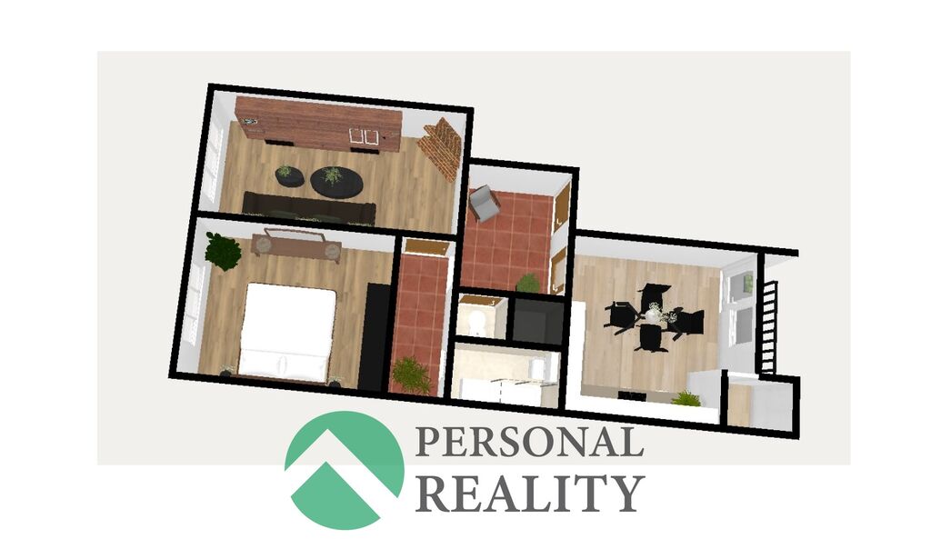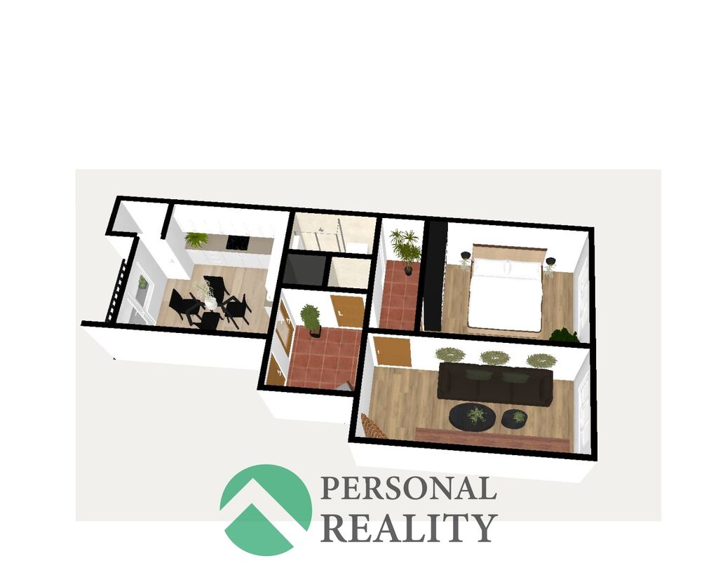 Dispozičně je byt velmi prakticky řešen: Z předsíně máte vstup do každé místnosti, do kuchyně, ložnice, obývacího pokoje, WC a koupelny. Kuchyň disponuje přístupem na balkon a také do špajzu.