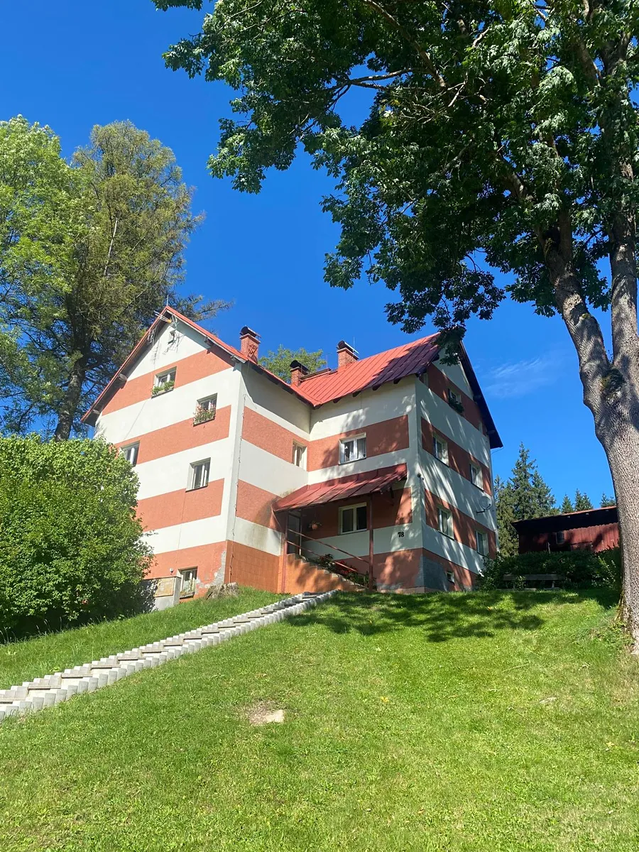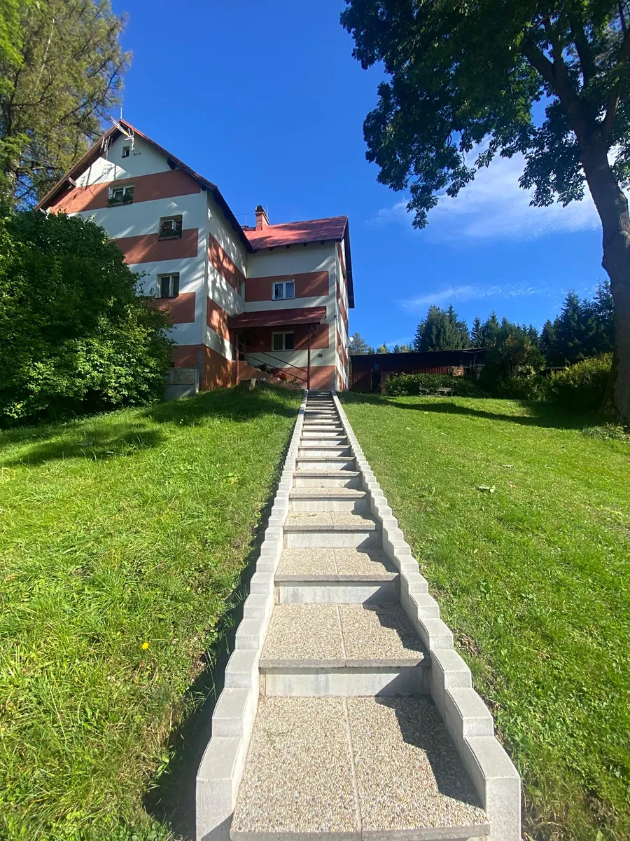 Prvorepubliková vila s elegantním architektonickým výrazem o 5 bytových jednotkách se nachází na kopci u lesa na Novém Světě a má úžasný panoramatický výhled na Čertovu horu i na skokanské můstky. Vládne zde klid a pohoda. Devizou je krásný travnatý pozemek se vzrostlými stromy a zahrádka, bylo vybudováno nové schodiště k domu přímo od komunikace, kde se nachází vlastní parkoviště pro rezidenty. Vila má 3.NP pro bydlení a 1.PP, kde jsou umístěny sklepy a prádelna (16,6 m2) se vstupem na zahradu, dřevěné kůlny. Dále je zde společná půda pro obyvatele domu. SVJ nečerpá žádný úvěr.