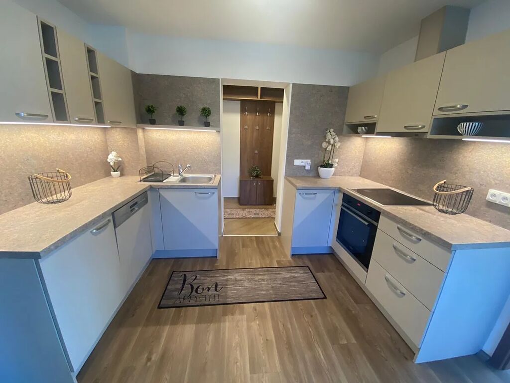 Námi nabízený byt 2+1 je umístěn v 2.NP /ze 3.NP, prošel kompletní rekonstrukcí (bezpečnostní vstupní dveře včetně bezpečnostního kování, vnitřní dveře zn. Sapeli, rozvody vody a odpady v plastu, elektroinstalace se stropním podsvícením v pokoji, ústřední topení včetně elektrokotle a bojleru obojí zn. Protherm, vnitřní omítky, plastová okna s dvojskly + sítě proti hmyzu, podlahy včetně krytin, koupelnová sanita, instalována kuchyňská linka s elektrospotřebiči zn. Siemens - myčka, varná deska, horkovzdušná trouba, digestoř zn. Franke, nerezový dřez). Byt je řešen ve velkorysém otevřeném prostoru s důrazem na vzdušnost a jednoduchou linii. Dřevo a bílá! I tak málo stačí k vytvoření moderního komfortního bydlení. Byt je vkusný, elegantní, s příjemnou energií, vše na sebe harmonicky navazuje.