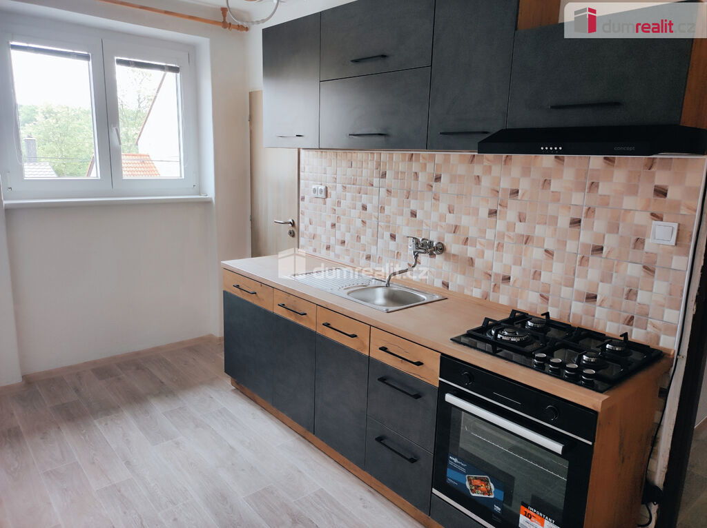 Kuchyňská linka je s plynovým sporákem a elektrickou troubou úplně nová, stejně tak jako celý byt, který je po kompletní rekonstrukci. V kuchyni je malá místnost použitelná jako špajz.