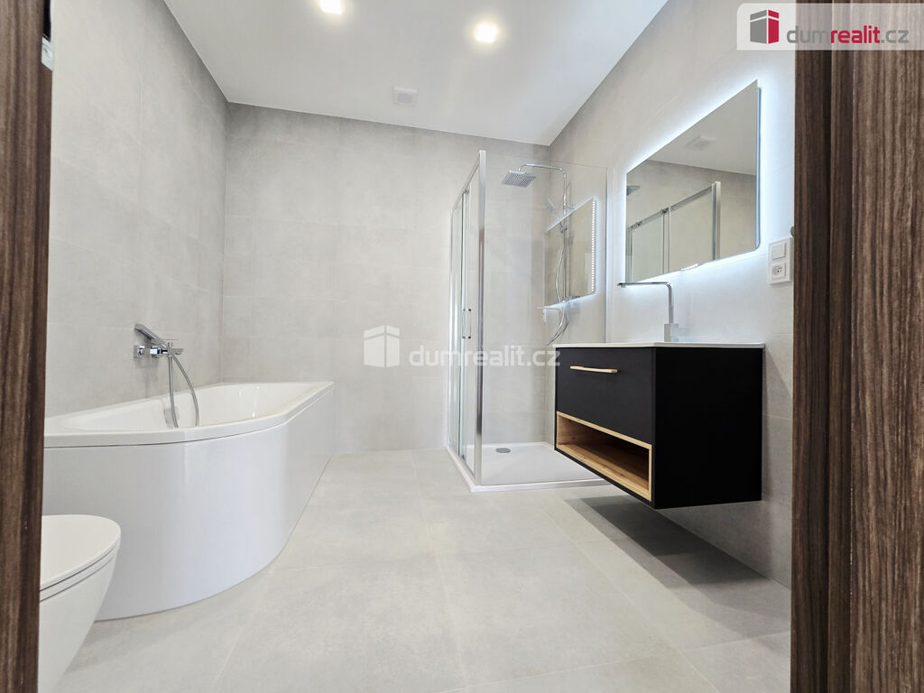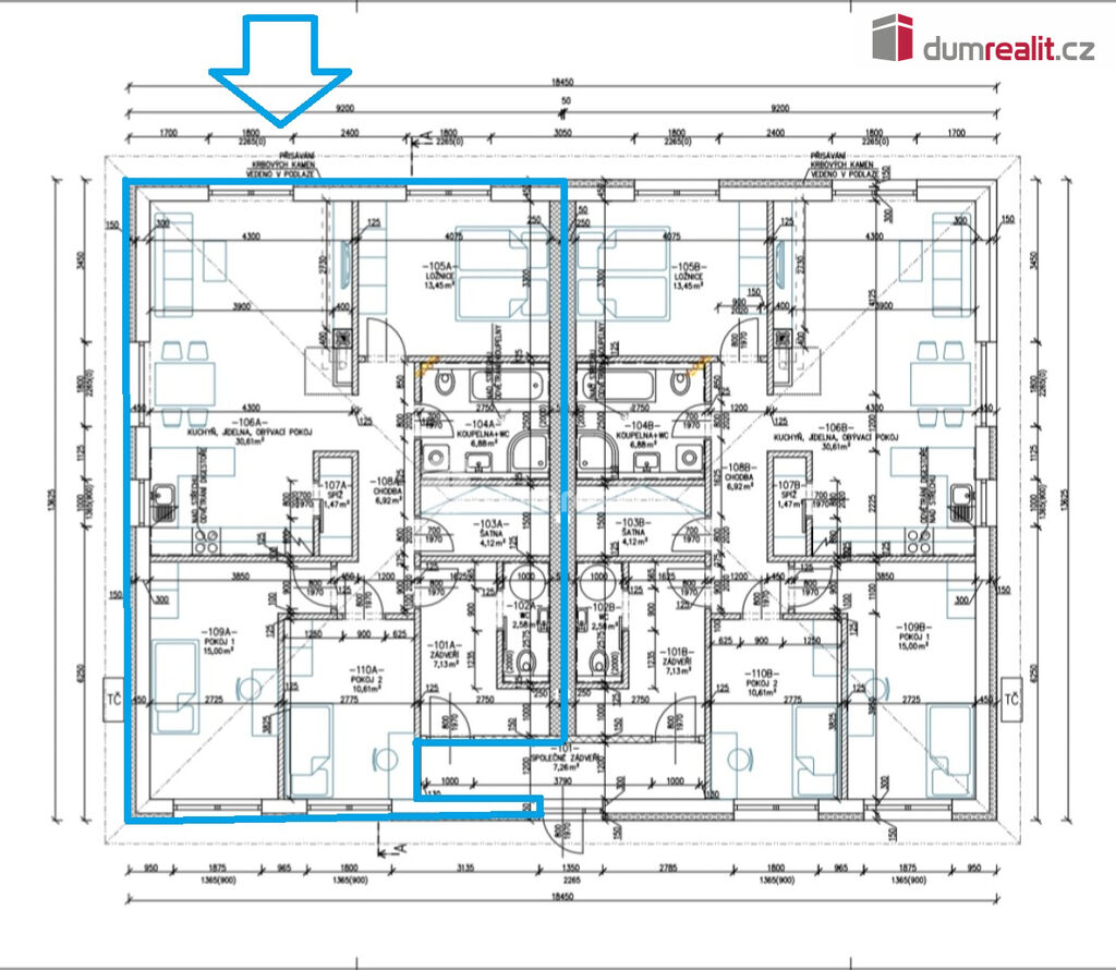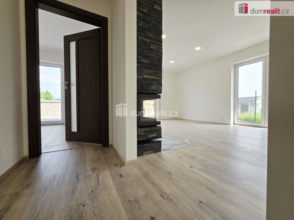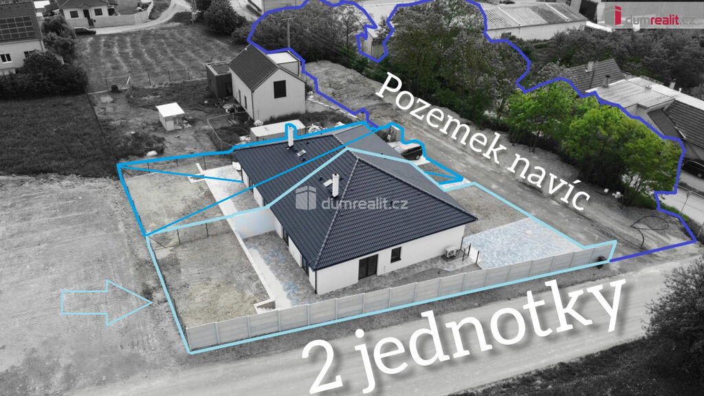 prodej rodinného domu o dvou bytových jednotkách v obci Dřínov. Volná je levá část od vstupních dveří. Nabízená jednotka je dispozičně řešená, jako 4+kk a každý disponuje užitnou plochou 142 m² ( podlahová plocha 102 m² + 40 m²) a pozemkem o rozloze 475 a 406 m². Dvojdům se nachází ve slepé ulici, kde stojí jen jeden sousední dům. Po dohodě se sousedem, tak může vzniknout rezidenční bydlení. V případě, že se majitelé dohodnou u vjezdu n společné bráně. Nemovitost má ještě jednu nespornou výhodu, náleží k ní ještě 685 m² pozemku před domem ve spolu-podílovém vlastnictví se sousedem. Ve fotogalerii najdete nafocený Prodávaný dvojdům. Dům je již připravený k nastěhování. Dispozičně jsou řešeny následovně: přes zádveří se dostaneme na samostatnou toaletu a dále do prostorné chodby, odkud jsou přístupné všechny místnosti. Tedy dva pokoje, ložnice, šatna, koupelna s toaletou a důmyslně řešený obývací pokoj s kuchyňským koutem (31 m² obývací pokoj jistě bude zdobit krb, který slouží, jako podružné vytápění). Z obývacího pokoje a ložnice je přímý vstup na krytou terasu. Dům se vyznačuje dostatkem soukromí a vysokými standardy. Pokud si přejete bydlet v klidu na venkově, přesto s dobrou dostupností do Prahy (Jen 15 minut na Letňany), pak je tento dům právě pro Vás. Z inženýrských sítí je k dispozici - vodovod, jímka , elektřina. Pro více informací kontaktujte makléře. Ev. číslo: 652545.