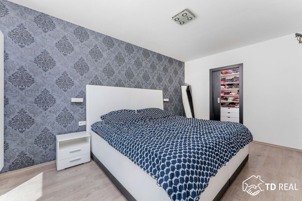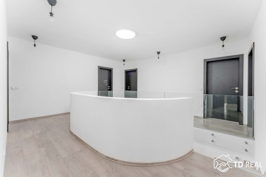 Ložnice (13 m²) je příjemně světlá a nabízí klidné místo pro odpočinek s vlastní šatnou a koupelnou. Dětské pokoje (12m² a 12 m²) oba tyto pokoje mají vlastní šatny a mají společnou koupelnu. Posilovna a bylo myšleno také na návštěvy, které svůj pokoj najdou v tomto patře, prostorná terasa.