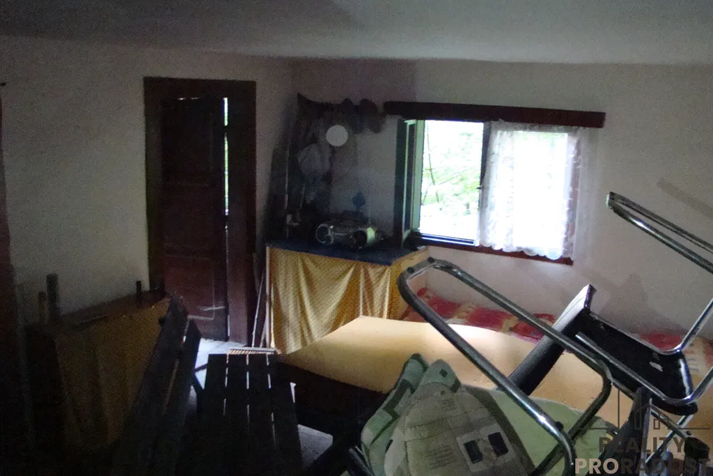 Prodej malebné zděné rekreační chaty o velikosti 2+1, 68m2, obytné plochy v lesnatém svahu nad řekou Berounkou v Újezdě nad Zbečnem u Křivoklát, nedaleko Valentova mlýna (1,5km) cesta podél řeky, nebo lodí(romantika). Budova stojí na vlastním pozemku č. parcely 224, o velikosti 34m2, ev.č. 25, k dispozici i signál na mobilní telefon i WIFI. Chata leží od řeky přibližně 200m , není v záplavovém místě, je v údolí mezi skalami , je zde pouze 5 chat, hloubka vody v řece vedle chaty 2metry ideální pro rybáře, rok stavby 1956. Počet podlaží 2 užitná plocha 68 ,ložnice v patře 34m2 u ložnice terasa 6m s výhledem na řeku , -topení tuhá paliva, pitná voda -studna dělané rozbory přivedená hadicemi až do chaty, - elektrického proud ze solárního panelu , přístupová cesta podle vody ze Zbečna nebo Račic, také možno vlastní lodí u řeky i přívoz k dispozici také -prodej možný s původním zařízením dle dohody ,částečně podsklepená, suché WC prohlídka dle telefonní dohody.