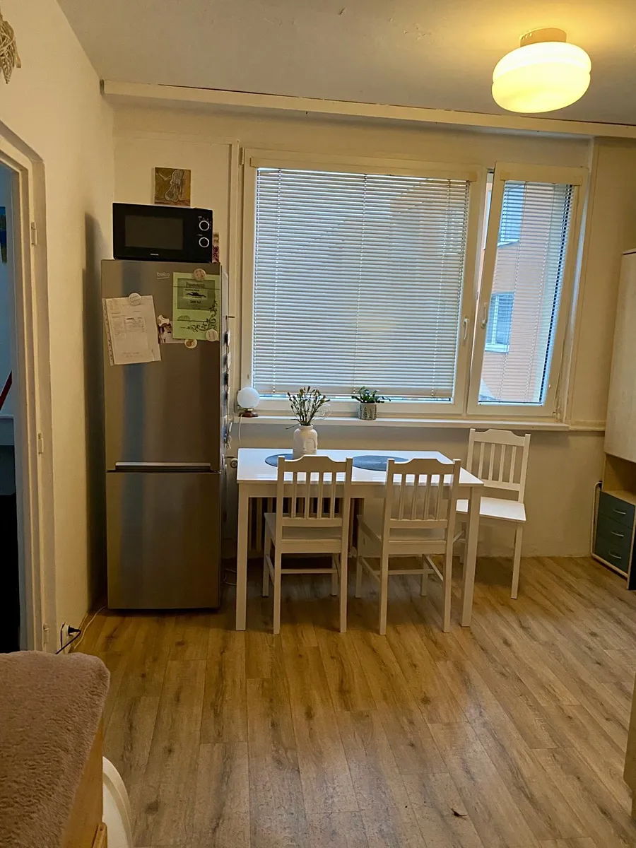 Dispozice bytu zahrnuje kuchyň, pokoj, předsíň, koupelnu s WC a sklepní kóji. K bytu náleží také společný balkón na chodbě, který můžete využít k posezení nebo sušení prádla. Byt je po částečné rekonstrukci - zděná koupelna, plastová okna, atd.