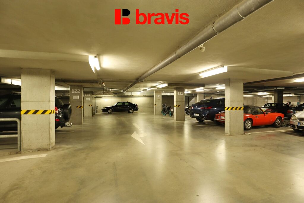 V garážích budovy je možnost vyhrazeného garážového stání za poplatek 1.500,- Kč měsíčně.