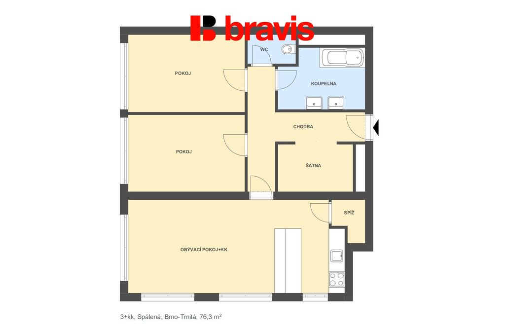Ve výhradním zastoupení majitele nabízíme k dlouhodobému pronájmu jedinečný byt o dispozici 3+kk s užitnou plochou 76 m², který se nachází na vyhledávané adrese Spálená v městské části Brno-Trnitá.