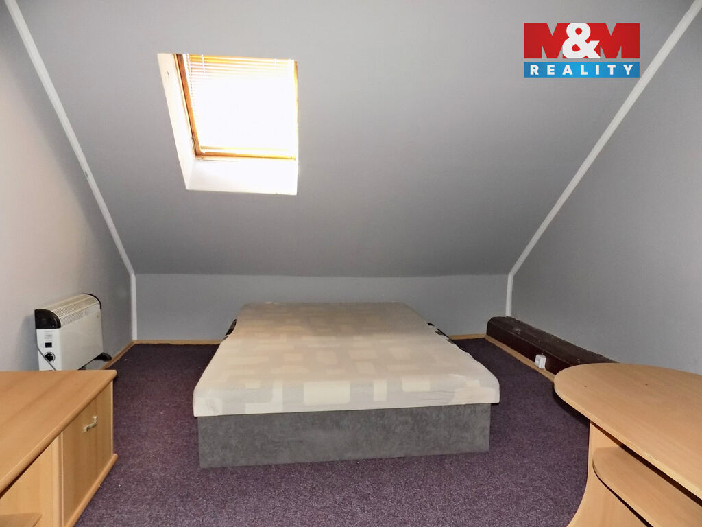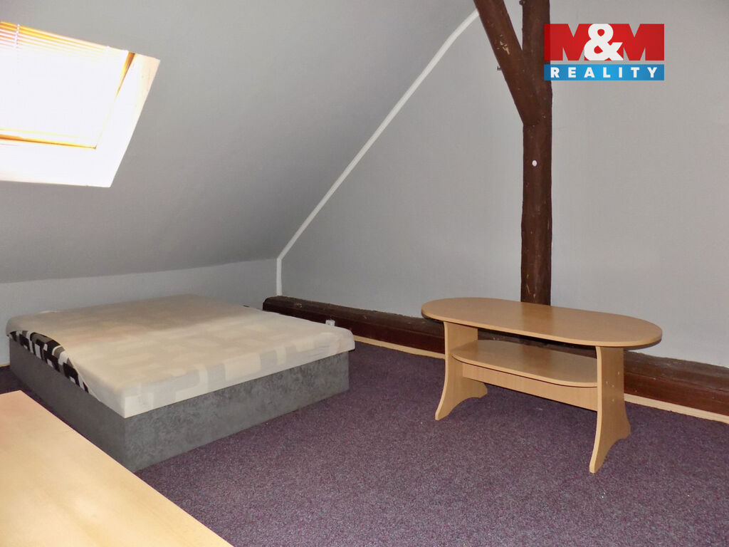 Nabízíme pronájem podkrovního bytu 1+kk o celkové ploše 30 m2, v cihlovém domě v centru lázeňského města Teplice. Byt je vybaven kuchyňskou linkou. Koupelna s vanou, umyvadlem a toaletou. Ohřev vody je zajištěn elektrickým bojlerem, vytápění elektrickým přímotopem. Měsíční nájemné činní 6.500,- Kč/ 1 os., vratná kauce 13.000,- Kč a poplatek realitní kanceláři 8.000,- Kč. K nájemnému je potřeba přičíst platbu za služby (elektrická energie, voda, úklid společných prostor). Elektřina bude převedena na nájemníka. Voda dle aktuální spotřeby, odečet každý měsíc. Dům postupně prochází revitalizací, bydlí zde slušní nájemníci. Pro pracující klienty. Upřednostníme dlouhodobý nájem. Pro více informací volejte makléře.