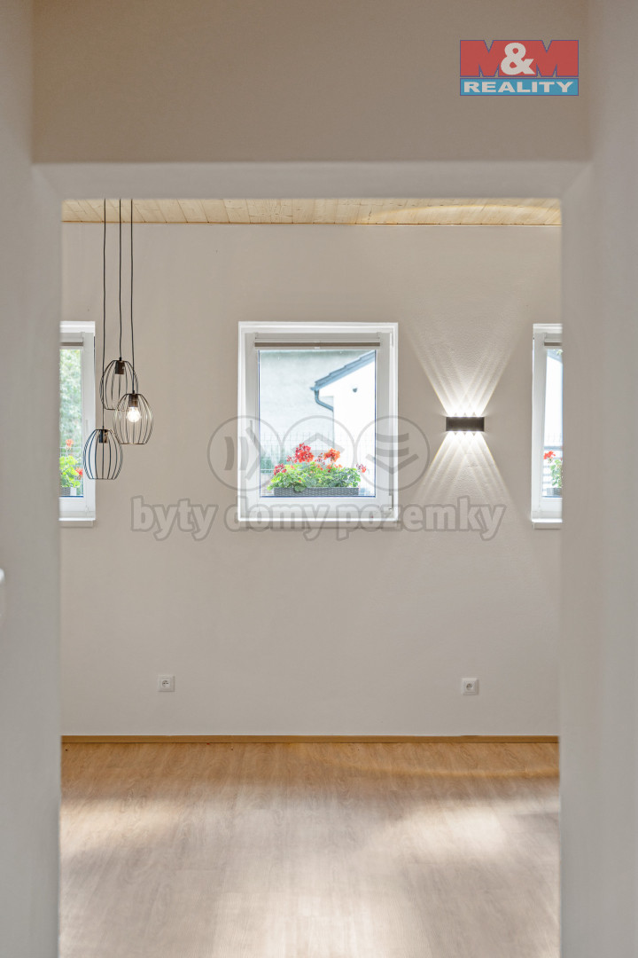 Dispozice: 3+kk, 104 m² + 2. NP připravených k dokončení (rozvody vody, kanalizace, elektřiny, internetu a TV již vyvedeny).