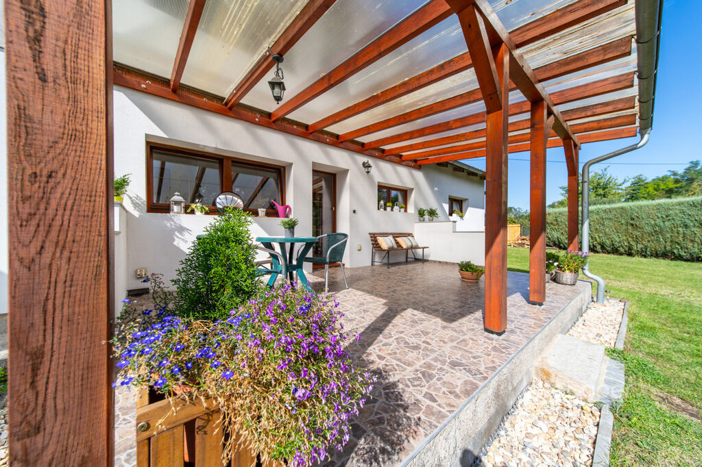 Nemovitost byla postavena v 60. letech a v roce 2005 prošla rozsáhlou rekonstrukcí. V roce 2019 byla dokončena půdní vestavba a nástavba nad částí domu. Dům je zděný a suchý, se střechou z betonové tašky KM-Beta a novými krovy z let 2017–2019. V přízemí o rozloze 80 m² se nachází předsíň, chodba, technická místnost, kuchyně s jídelnou, obývací pokoj, ložnice, pracovna a koupelna s vanou, sprchovým koutem a WC. Z jídelny je přímý vstup na zastřešenou terasu s pergolou, odkud vede cesta do okrasné i užitkové zahrady. Podkroví o výměře 70 m² nabízí velkou otevřenou halu, dvě ložnice, koupelnu se sprchovým koutem a WC a komoru. Sklep má 12 m².
