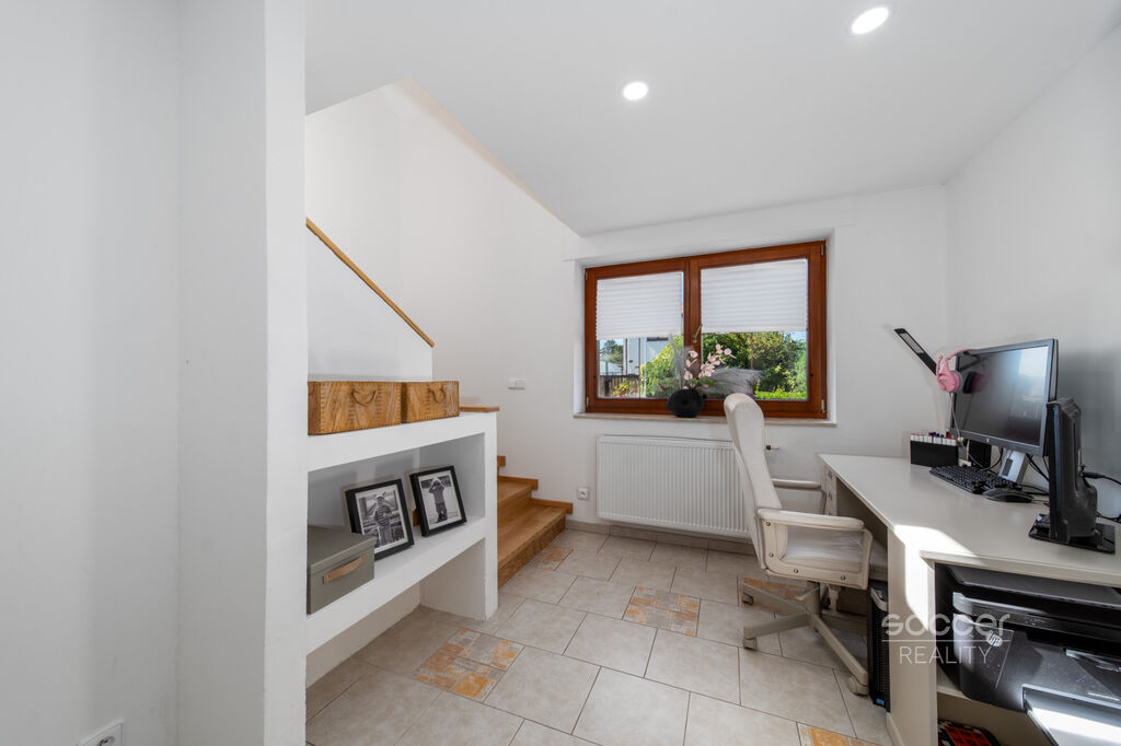 Obec Křečkov nabízí dobrou občanskou vybavenost – základní školu pro první stupeň, dvě školky (včetně soukromé dětské skupiny), obchod, hospůdku, fotbalové hřiště a dětská hřiště. Dopravní dostupnost je výborná – do Poděbrad i Nymburka se pohodlně dostanete autobusem, vlakové spojení je v nedalekém Velkém Zboží. Do Prahy (Černý Most) se dostanete za 35 minut a do Mladé Boleslavi za 45 minut. Tento dům je ideální pro rodiny, které hledají klidné místo k bydlení s výbornou dostupností města a možností užívat si vlastní zahradu a přírodu hned za domem.
