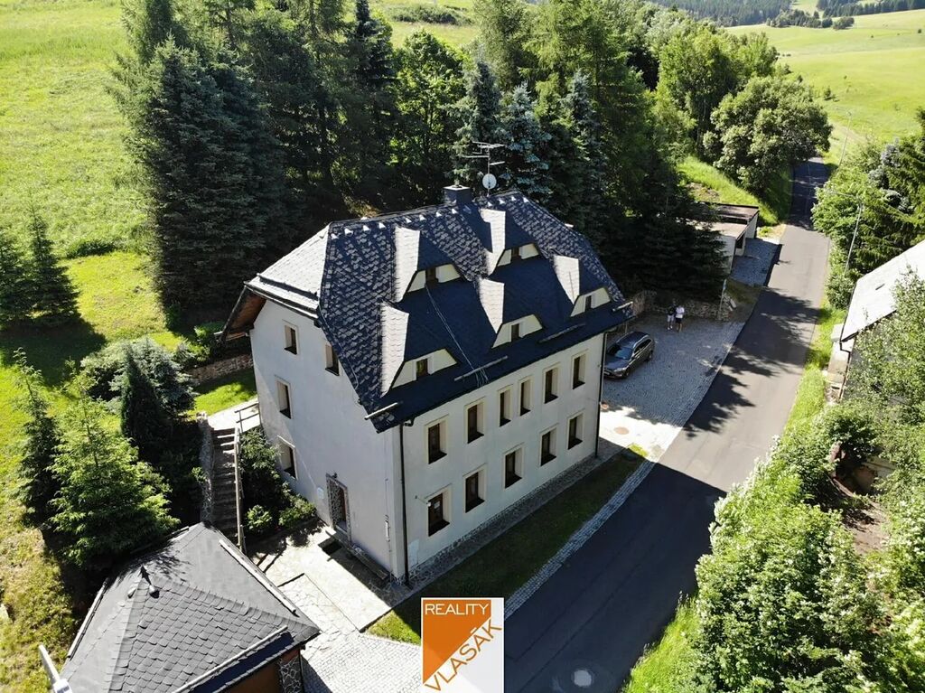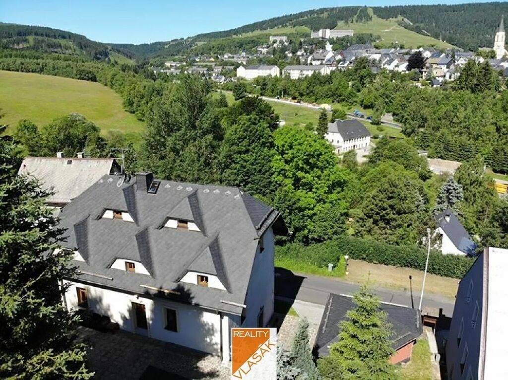 Samostatný rekreační dům se samostatnou garáží se nachází v obci Loučná pod Klínovcem, pouhých 1,5 km od parkovišť Skiareálu Klínovec. Celý rekreační dům je kompletně rekonstruovaný a provozovaný jako rekreační dům s aktuální kapacitou 18 ubytovaných osob. V přízemí se nachází společenská místnost, společná kuchyň, WC, lyžárna, úklidová místnost a kancelář. Všechny pokoje mají vlastní sociální zařízení. V patře jsou 2 pokoje pro 2 osoby a 2 pokoje pro 3 osoby. V podkroví jsou 2 pokoje pro 4 osoby. Užitná podlahová plocha činí 370 m2, pozemek celkem 992 m2 - z toho zastavěná plocha domu 107 m2.