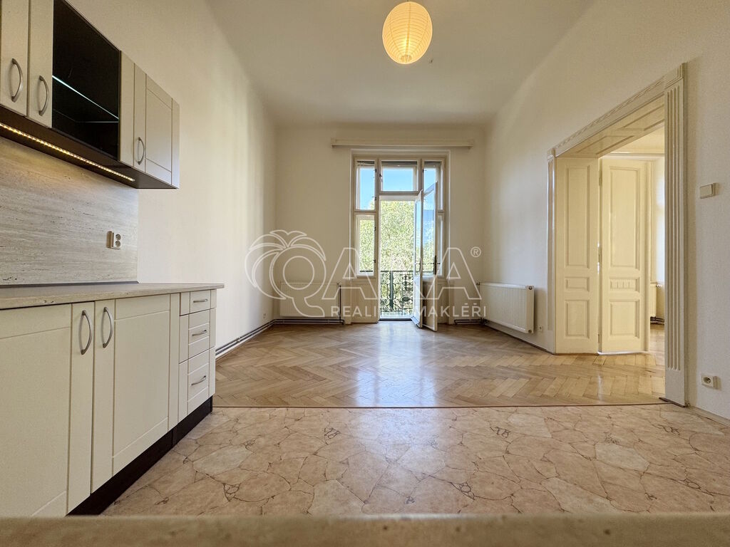 Zprostředkuji Vám pronájem krásného, světlého bytu dispozice 3+kk, s příjemným výhledem do parku, který se nachází ve Zborovské ulici, na úrovni náměstí 14.října, v pražské čtvrti Smíchov. K bytu o výměře 98 m2 náleží 2 menší balkóny, jeden s výhledem na náměstí 14.října, druhý do boční ulice. Středový (rohový pokoj) je přístupný z ložnice, nebo z obytné kuchyně. V bytě je rohová kuchyňská linka, vybavená spotřebiči: elektrickou varnou deskou, pečící troubou a digestoří. V případě zájmu majitel dodá lednicí s mrazákem. Koupelna je zařízena rohovou vanou, umyvadlem s umyvadlovou skříňkou a topným žebříkem. WC umístěno samostatně. Vytápění bytu/ohřev vody zajišťuje plynový kotel umístěný v koupelně, kde je rovněž přípojka na pračku. Pračku majitel rovněž může zajistit. Okna bytu jsou dřevěná špaletová, budou nově osazeny žaluziemi. V bytě jsou dubové parkety, vyjma kuchyňské části, kde je PVC, v koupelně a na WC je dlažba. Byt se nachází v 2.patře činžovního domu s výtahem. K bytu nenáleží sklep. Výborná dopravní dostupnost: zastávka tramvají minuta chůze, stanice metra Anděl (trasa B) 6 minut pěšky. Skvělá občanská vybavenost: krásné prostředí u Vltavy, Náplavka 5 minut pěšky, nedaleko oblíbený park Kampa, Petřín, Dětský ostrov. Obchodní centrum Nový Smíchov (kino, Tesco, obchody, služby, fitness) na druhé straně náměstí, PENNY supermarket u domu, v okolí mnoho restaurací, barů a kaváren. Byt je vhodný pro pár nebo pro rodinu k dlouhodobému pronájmu (min. 12 měsíců). Měsíční náklady: nájem + služby 830,-Kč/osoba + přepis plynu a el. energie na nájemce. Jistota ve výši 56.000 Kč + odměna zprostředkovatele. Prohlídky možné po dohodě, k nastěhování od 15.10.2025 nebo od 1.11.2025.