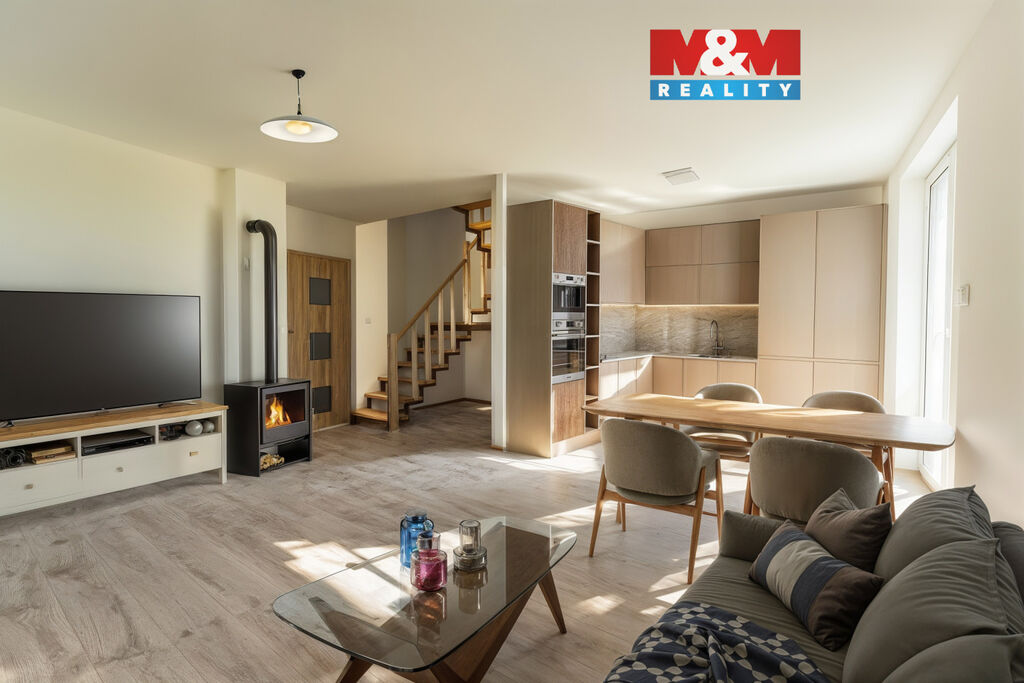 Dispozice domu poskytuje pohodlné bydlení pro rodinu – otevřený obývací prostor s kuchyňským koutem, tři samostatné ložnice, koupelnu s vanou a WC a technickou místnost. Nemovitost je postavena s důrazem na energetickou úspornost a kvalitní materiály, což se příznivě promítá do nízkých provozních nákladů.