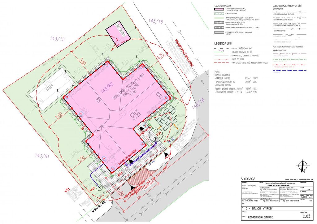 -novostavbu rodinného domu s garáží pro 2 vozy,