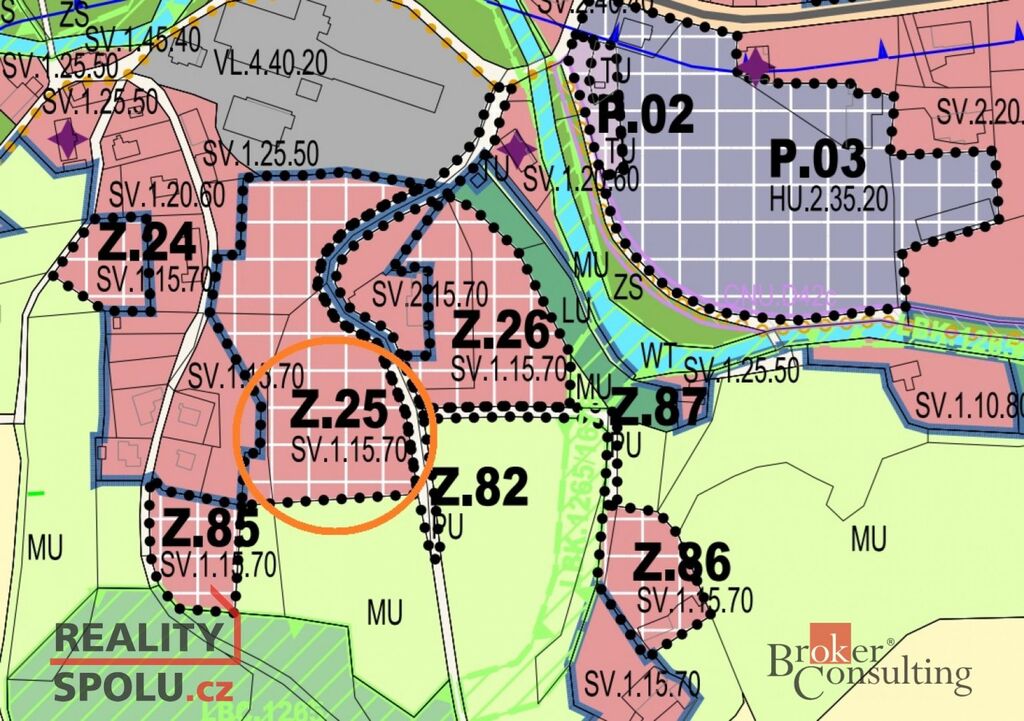 Územní plán obce umožňuje na pozemcích výstavbu jednopodlažních rodinných domů s obytným podkrovím se zastavěnou plochou nadzemních staveb max. 15% a zachováním zeleně min. 70% z plochy pozemku.