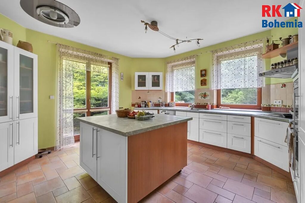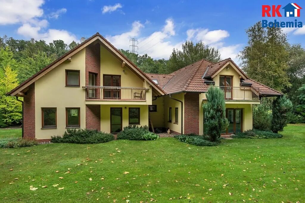 Prodej rodinný dům 9+2, na pozemku o CP 4183 m2 se zahradou, bazénem, dvougaráží, Hrdlořezy u Mladé Boleslavi Prodej atypického rodinného domu na pozemku o CP 4183 m2, Hrdlořezy u Mladé Boleslavi. Objekt kolaudovaný v r. 2005 s velkou citlivě řešenou zahradou se vzrostlými stromy na okraji obce nabízí komfort bydlení nedaleko města a přitom poskytuje obyvatelům příjemné soukromí na kraji lesa a přírody. Dům o dispozici 9+2 s dvougaráží, vnitřním bazénem s automatickou regulací PH, solární ohřev vody, vlastní čistička odpadních vod, studna na pozemku, les, potok, vinný sklípek 8 x 3,5m. Vnitřní dispozice: Přízemí - vstupní hala, chodba, prostorná obytná místnost s francouzskými okny na zahradu, jídelna, kuchyně, koupelna se sprchovým koutem, WC, z haly vstup do mezichodby, z té vstupy do dvougaráže, technické místnosti, vnitřního bazénu, schodiště do patra. Patro - obytné podkroví - chodba se vstupy do dvou velkoryse prostorově řešených ložnic, jednotlivých dalších 4 ložnic (u 4 vstupy na balkon), pracovna, velká světlá koupelna a místnost s přípravou na druhou kuchyni. Mladá Boleslav 5 minut jízdy, výjezd na dálnici D10 Praha - Mladá Boleslav - Liberec rovněž. Financování hypotékou Vám pomůžu zajistit. Více info u makléřky. Doporučuji prohlídku