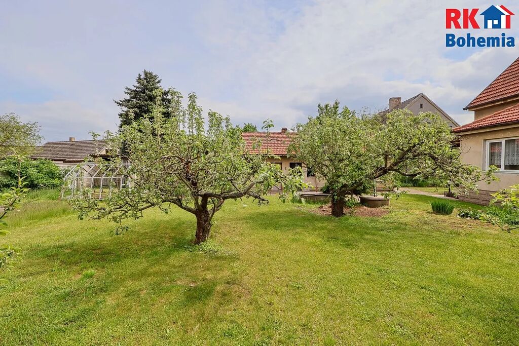 Zahrada je rovinatá, oplocená a osázená ovocnými stromy a okrasnými keři. Na pozemku se nachází garáž, kůlna, chlívek a studna.