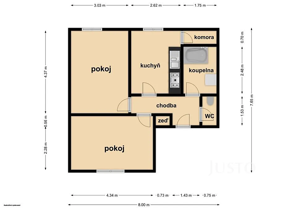 V zastoupení majitele nabízíme k pronájmu byt 2+1 v cihlovém domě o velikosti 53 m² přímo v centru města Zábřehu. Jedná se o byt po rekonstrukci, který je umístěn v I.NP cihlového domu. V bytě se nachází prostorný obývací pokoj s výhledem do klidného dvora. Dále samostatná prostorná ložnice. V kuchyni je kuchyňská linka se spotřebiči - elektrický sporák s troubou a digestoří, dřez. Jídelní kout je součástí kuchyně. Kuchyně má také špajzku na potraviny s pračkou, která je součástí vybavení bytu. Koupelna disponuje vanou a umyvadlem. Toaleta je řešena samostatně. Na podlaze nové PVC. V bytě plastová okna se žaluziemi. Ohřev TUV vlastním bojlerem v bytě. Vytápění řešeno společnou plynovou kotelnou v přízemí domu. Parkování pouze v okolí domu. V blízkosti se nachází kompletní nabídka služeb, obchody, restaurace, pošta, banky, bus atd. Upřednostňujeme dlouhodobý pronájem spolehlivým nájemníkem. V případě zájmu o prohlídku kontaktujte makléře nabídky a sjednejte si vhodný termín prohlídky. Byt Vám rádi představíme.