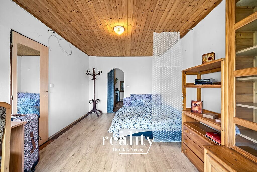 Hlavní obytná část má dispozici 3+1 s podkrovím, kde se nachází útulný prostor pro spaní a otevřená část vhodná pro studovnu, dětský pokoj nebo jiné využití dle potřeb. Součástí nemovitosti je také samostatný vejminek 1+1 s vlastní koupelnou a toaletou, ideální pro vícegenerační bydlení či ubytování hostů, přičemž není propojen s hlavní stavbou. Celková užitná plocha činí 202 m², zastavěná plocha 137 m² a celková rozloha pozemku 946 m².
