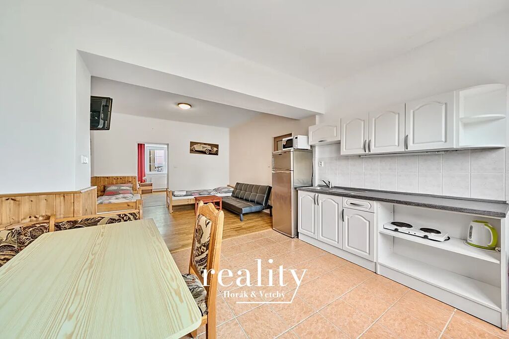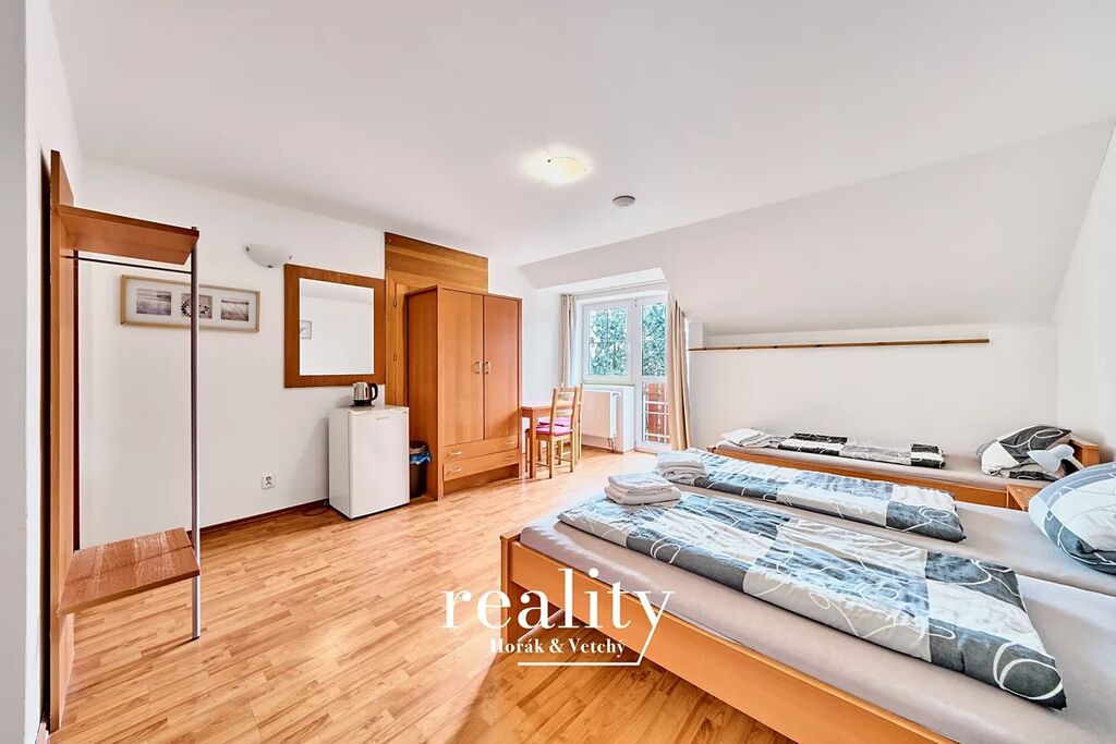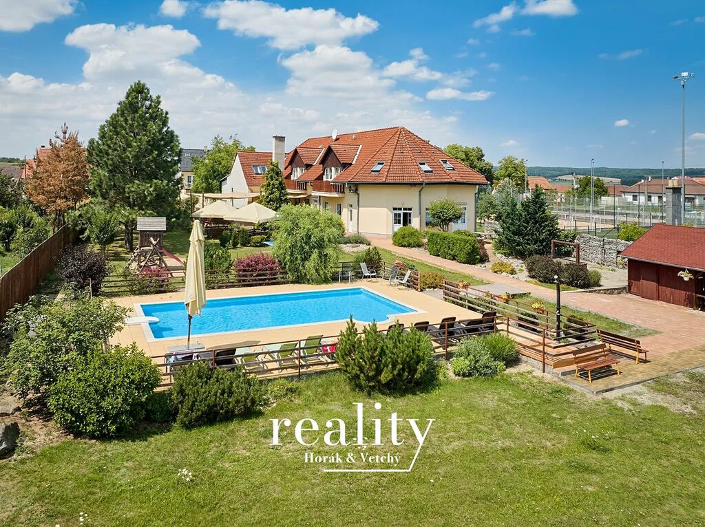 Velké snížení ceny!! Nabízíme vám jedinečnou příležitost k zakoupení oblíbeného zavedeného rodinného penzionu s restaurací Šalamoun. Atraktivní ubytování v klidné lokalitě v blízkosti Jevišovické přehrady. Nabízenou nemovitost je možné převzít a dále provozovat jako dobře zavedený penzion s restaurací s celoročním provozem pro pořádání oslav, svateb, firemních oslav a kurzů, sportovních soustředění, teambuildingů apod. Další možné využití se nabízí jako větší rodinné sídlo nebo reprezentativní prostory pro společnost. Pro investory je i jistě zajímavá myšlenka přebudovat obě budovy penzionu (nebo alespoň jednu z nich) na bytové jednotky. Je zde i určitě potenciál pro další výstavbu v zadní části velkého přilehlého pozemku. Stávající majitelé mají vyhotovený projekt na krytý bazén a wellness. Jevišovice jsou velmi oblíbenou turistickou a rekreační destinací pro obyvatele Znojma a Brna díky místní přehradě, množství cyklistických tras a kulturním památkám města. Penzion sestává ze dvou budov, první dům je orientován do ulice a nabízí ubytování ve čtyřech apartmánech a dalších čtyřech pokojích. Druhá budova orientovaná do zahrady disponuje restaurací pro 35 osob, moderně nákladně vybavenou kuchyní odpovídající všem hygienickým předpisům, salónkem pro 20 osob, dvěma apartmány a čtyřmi pokoji. Dále zde naleznete menší byt pro personál, kancelářské zázemí a velký půdní prostor. Všechny pokoje mají vlastní hygienické zázemí a celkem nabízí penzion ubytování pro 49 osob. K penzionu náleží krásný rovinatý pozemek o výměře téměř 5000m2, na kterém se nachází venkovní bazén, trampolíny, hřiště pro děti, domeček se saunou, pingpongový stůl a venkovní terasa. Útulnou atmosféru dotváří v zahradě stálozelené keře a záhony v létě kvetoucí všemi barvami. Samozřejmostí je prostorné parkoviště pro větší množství aut. V ceně je veškeré vybavení penzionu. Tato nemovitost působí z uliční strany velmi nenápadně, o to víc vás překvapí potenciál všeho, co je nabízeno! Využijte tuto šanci, kdy stačí převzít klíče a pokračovat v úspěšném podnikání! PENB nebylo dodáno, proto je momentálně uvedena energetická třída "G"