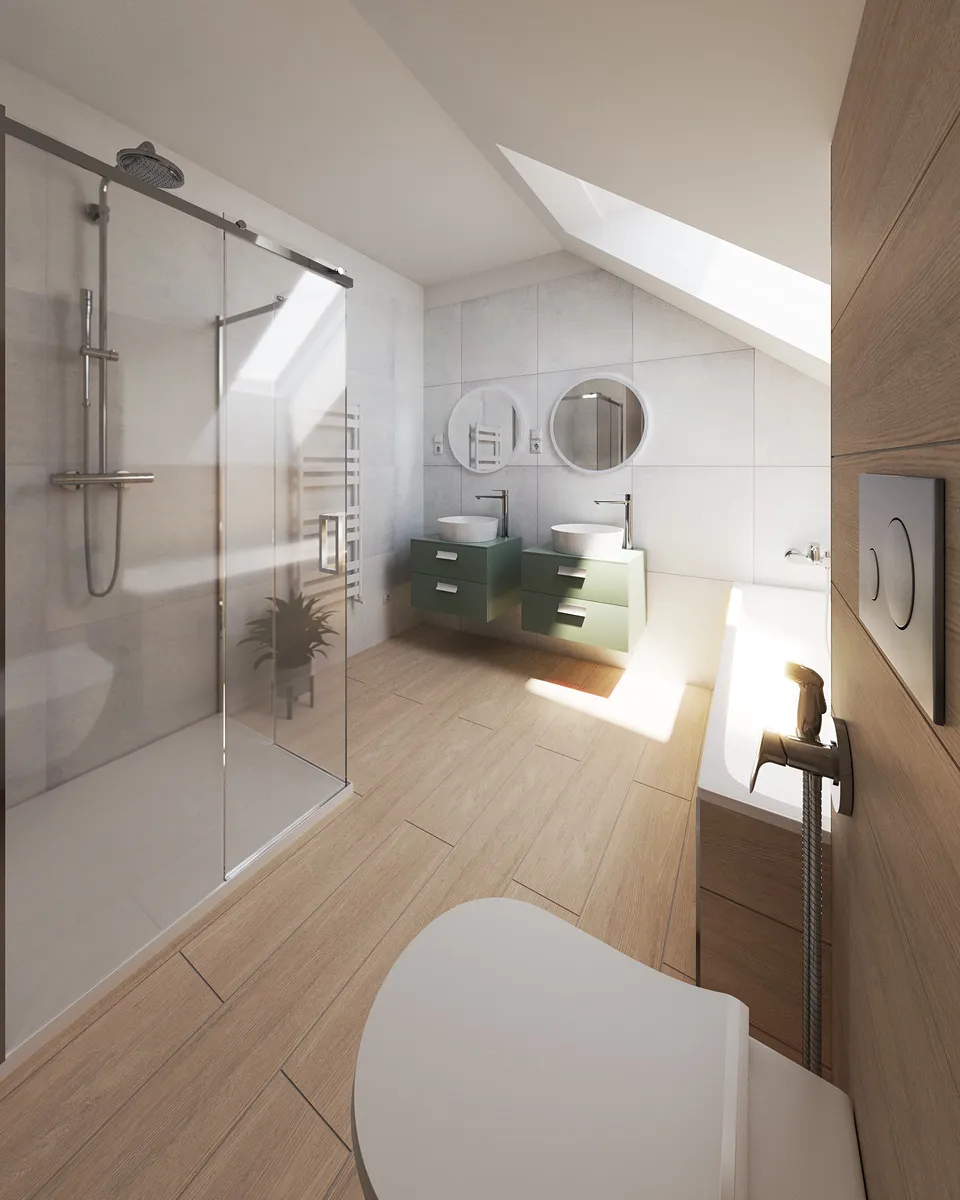 Rodinný dům K 120 je navržen jako jednopodlažní objekt s obytným podkrovím zastřešený sedlovou střechou. V rámci projektu Újezd u Brna je koncipován jako volně stojící dům, dvojdům nebo jako řadový dům. Dispozičně spadá do kategorie 5+kk. Součástí domu je garáž, která je od domu provozně oddělena. Hlavní vstup do objektu je z ulice do vstupní haly a dále pak do chodby se schodištěm, ze které je přístupný hlavní obytný prostor s jídelnou a kuchyňským koutem, dále koupelna s technickým zázemím a pokoj. Ve 2.NP jsou umístěny tři pokoje a koupelna.