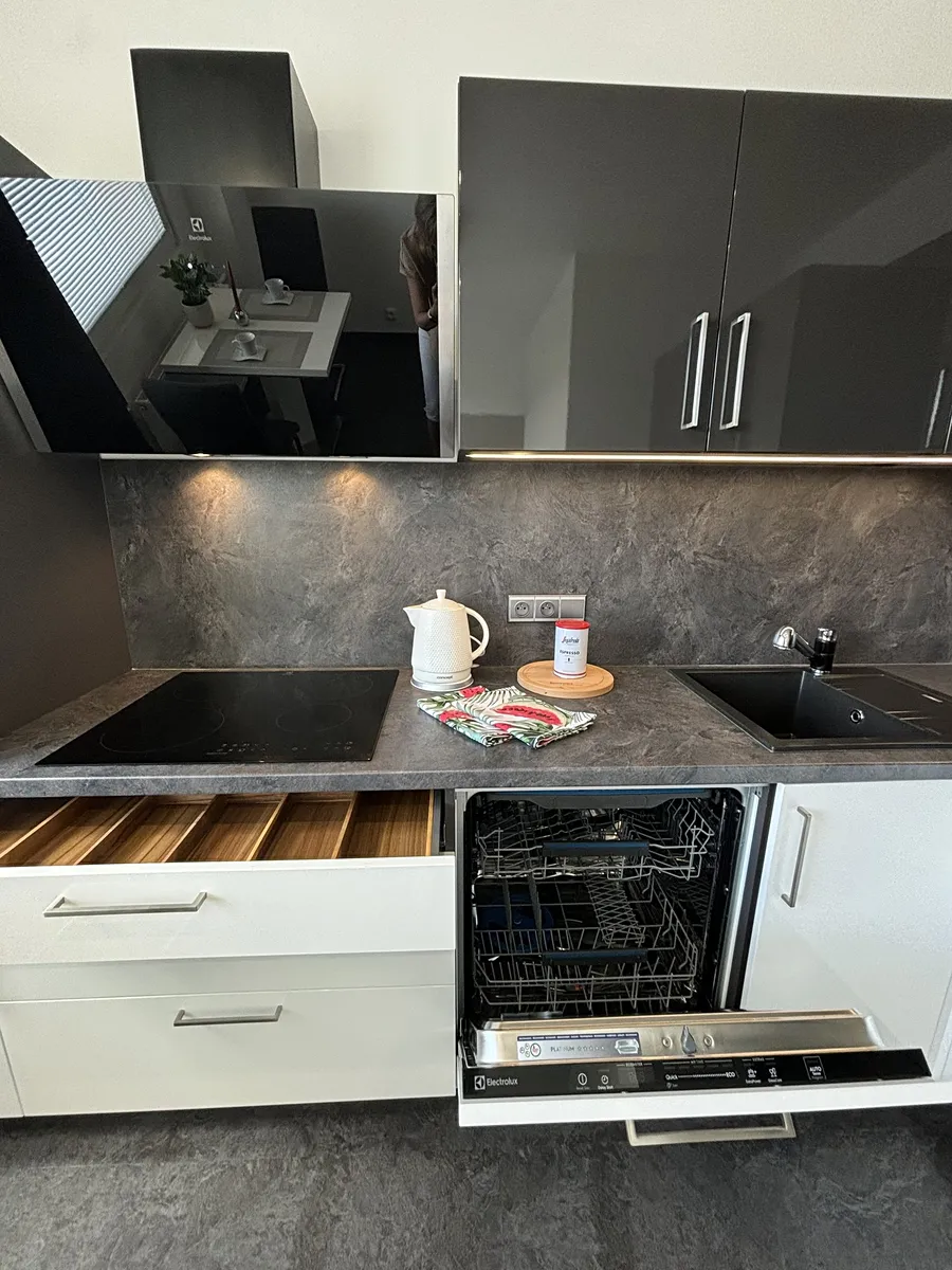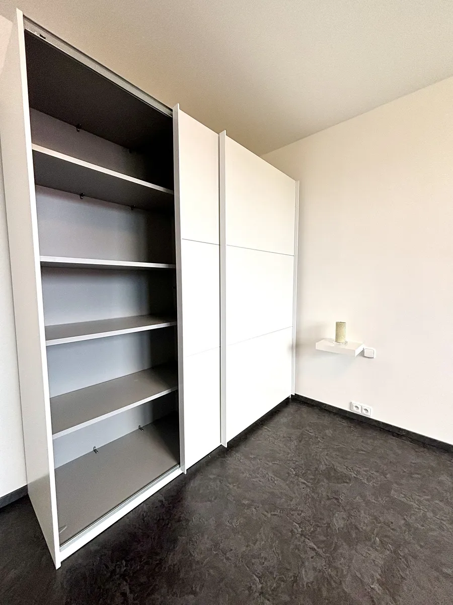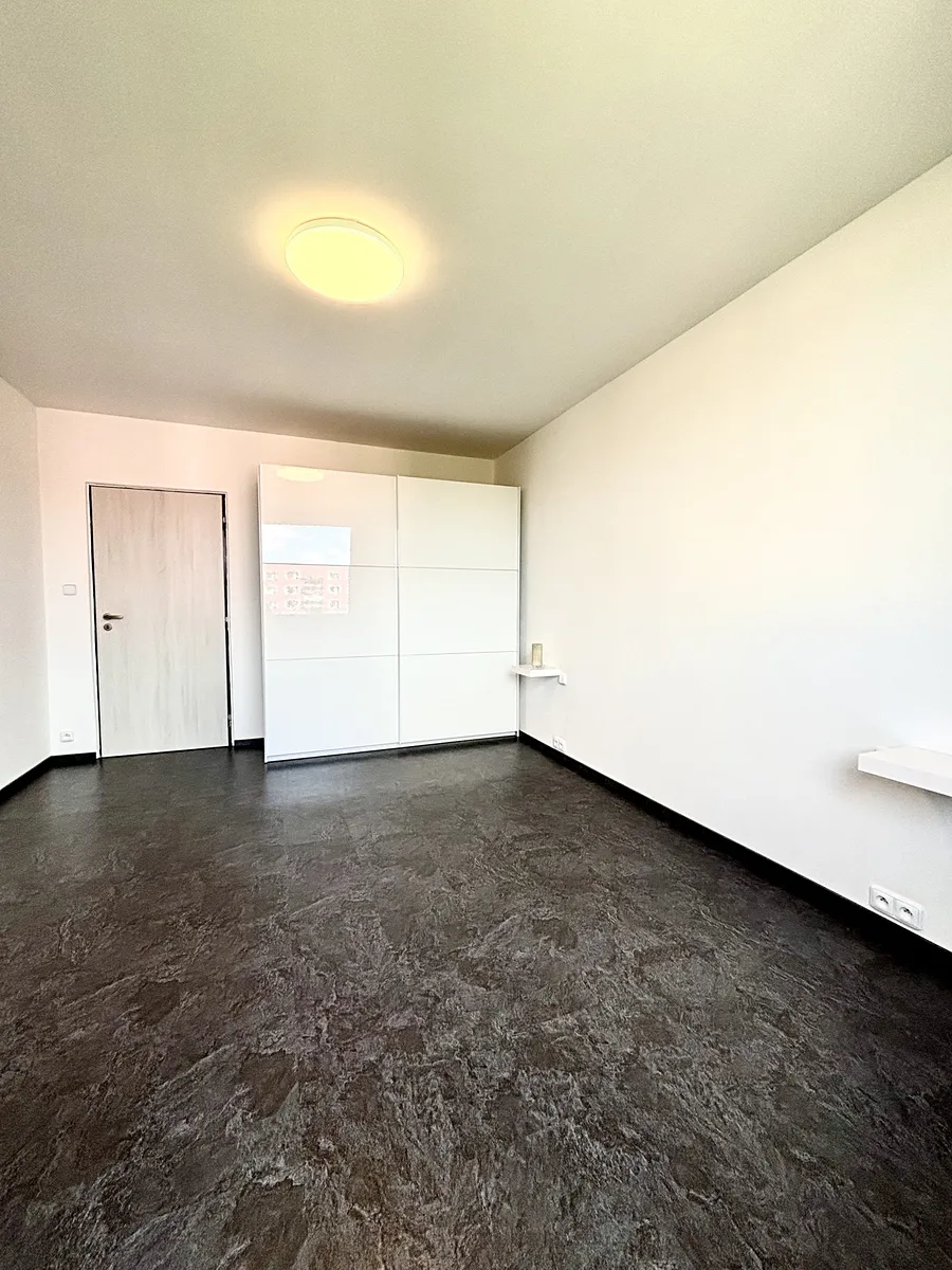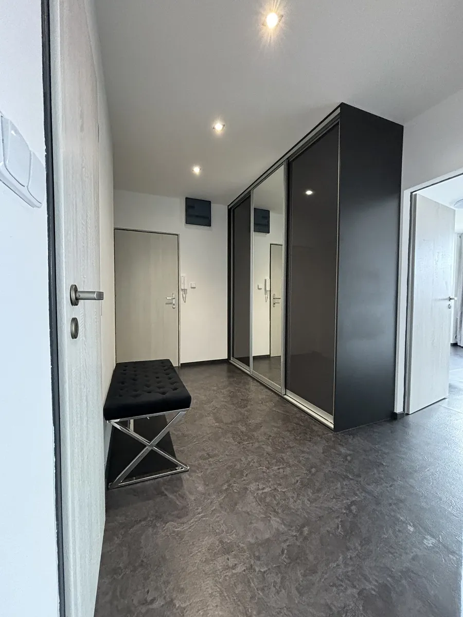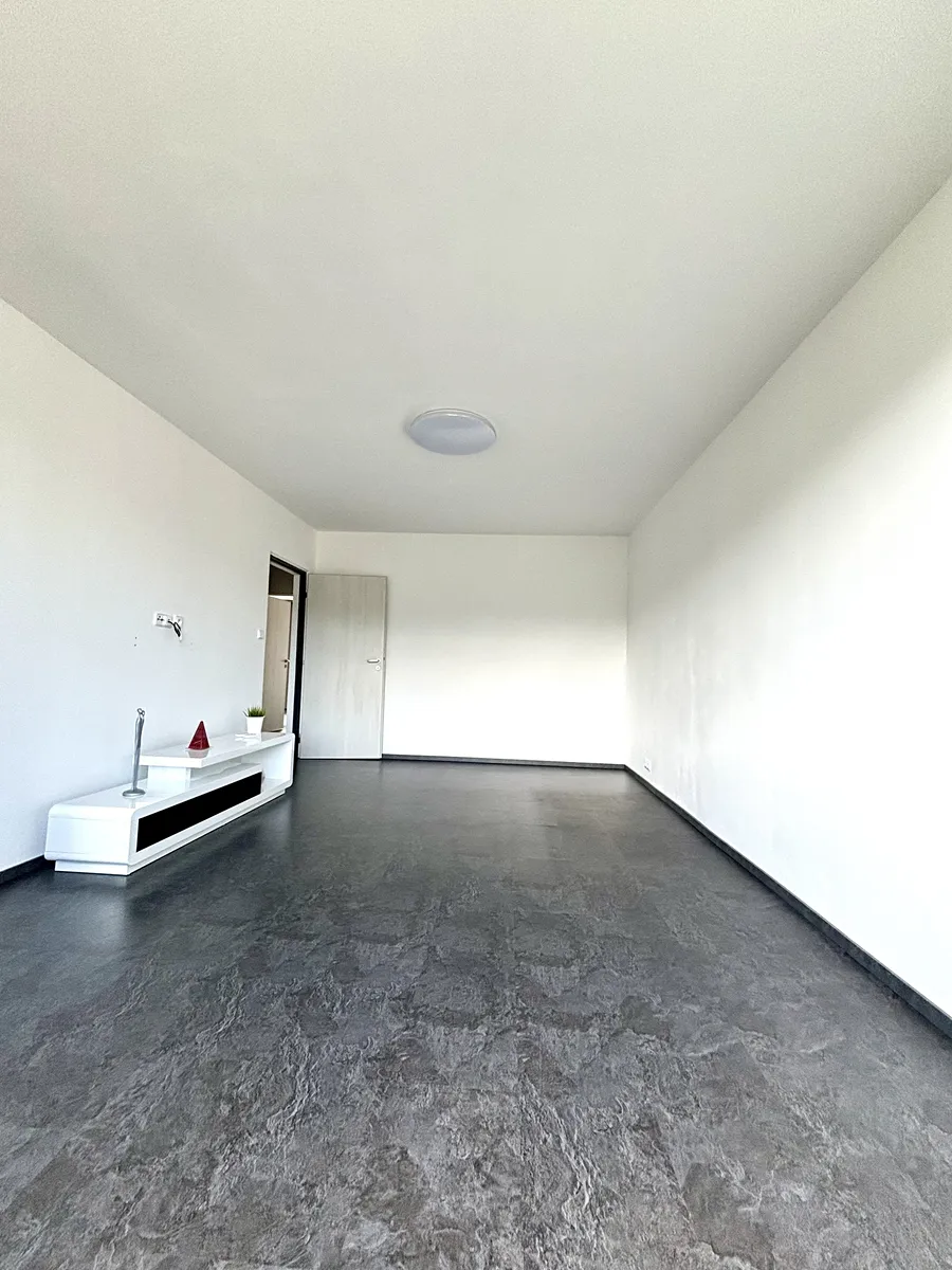 Dispozice bytu: kuchyň je vybavena novou kuchyňskou linku s vestavěnými spotřebiči (myčka, lednice, varná deska, trouba), jídelní stůle + židle, velký obývací pokoj se skřínkou pod televizi, samostatný pokoj se šatní skříní, zděná prostorná koupelna se sprchovým koutem a místem na pračku i sušičku, samostatné WC a prostorná předsíň, kde je velká vestavěná skříň.