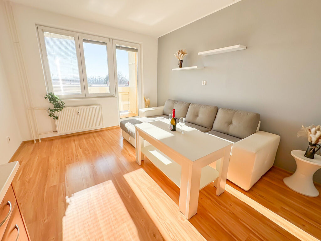 Byt prošel rekonstrukcí a je ve velmi dobrém technickém stavu. Dispozičně je řešen jako vstupní chodba s vestavnou skříní, obývací pokoj s kuchyňským koutem, ložnice a koupelna se sprchovým koutem a toaletou. Kuchyňská linka je plně vybavena spotřebiči – k dispozici je lednice, elektrická trouba, sklokeramická varná deska, digestoř i mikrovlnná trouba. V obývací části se nachází gauč a konferenční stolek. Ložnice je vybavena velkou vestavěnou skříní, zbývá pouze doplnit postel dle vlastních představ. Byt je tedy částečně zařízený a vhodný jak pro vlastní bydlení, tak i jako investice.